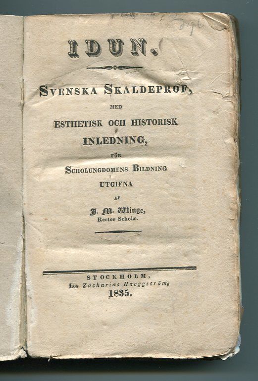 Idun. Svenska skaldeprof, med esthetisk och historisk inledning, för scholungdomens bildning utgifna af J. M. Winge.