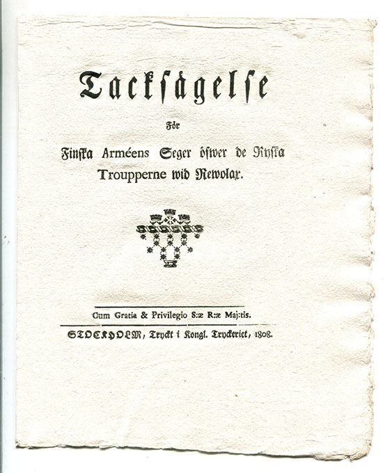 Tacksägelse för finska arméens seger öfwer de ryska troupperne wid Rewolax.