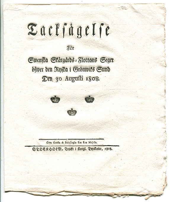 Tacksägelse för swenska skärgårds-flottans seger öfwer den ryska i Grönwiks sund den 30 augusti 1808.