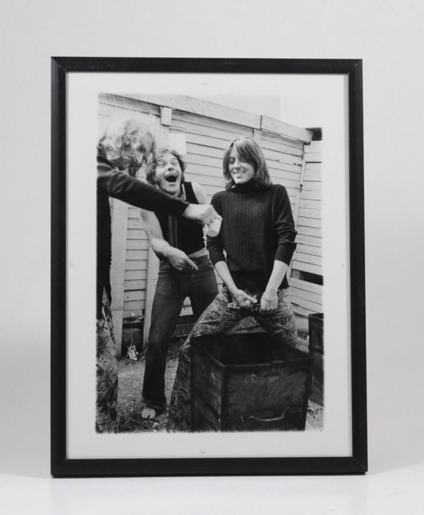 * Wili Jönsson of Danish band Gasolin' is putting out the fire with gasoline, as he pees on a fire in a dustbin with lead singer Kim Larsen and (just out of frame) lead guitarst Franz Beckerlee laughing on the side. Taken during a break in the recording session of their second album in July 1972.