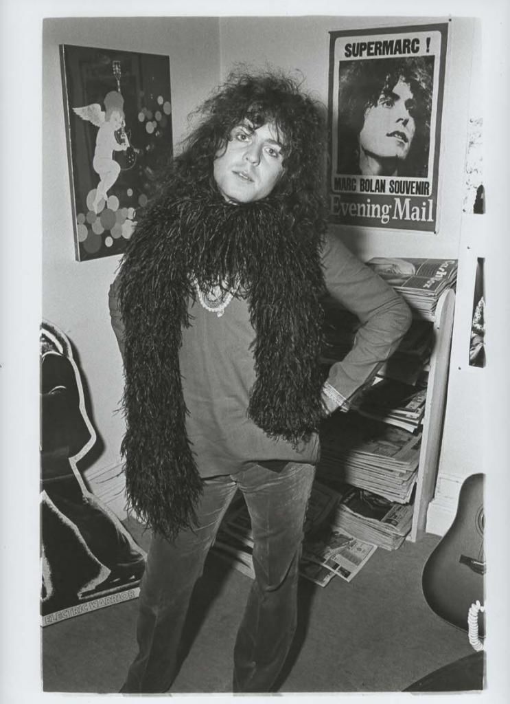 * Marc Bolan from T-Rex at his office in London, 1973.