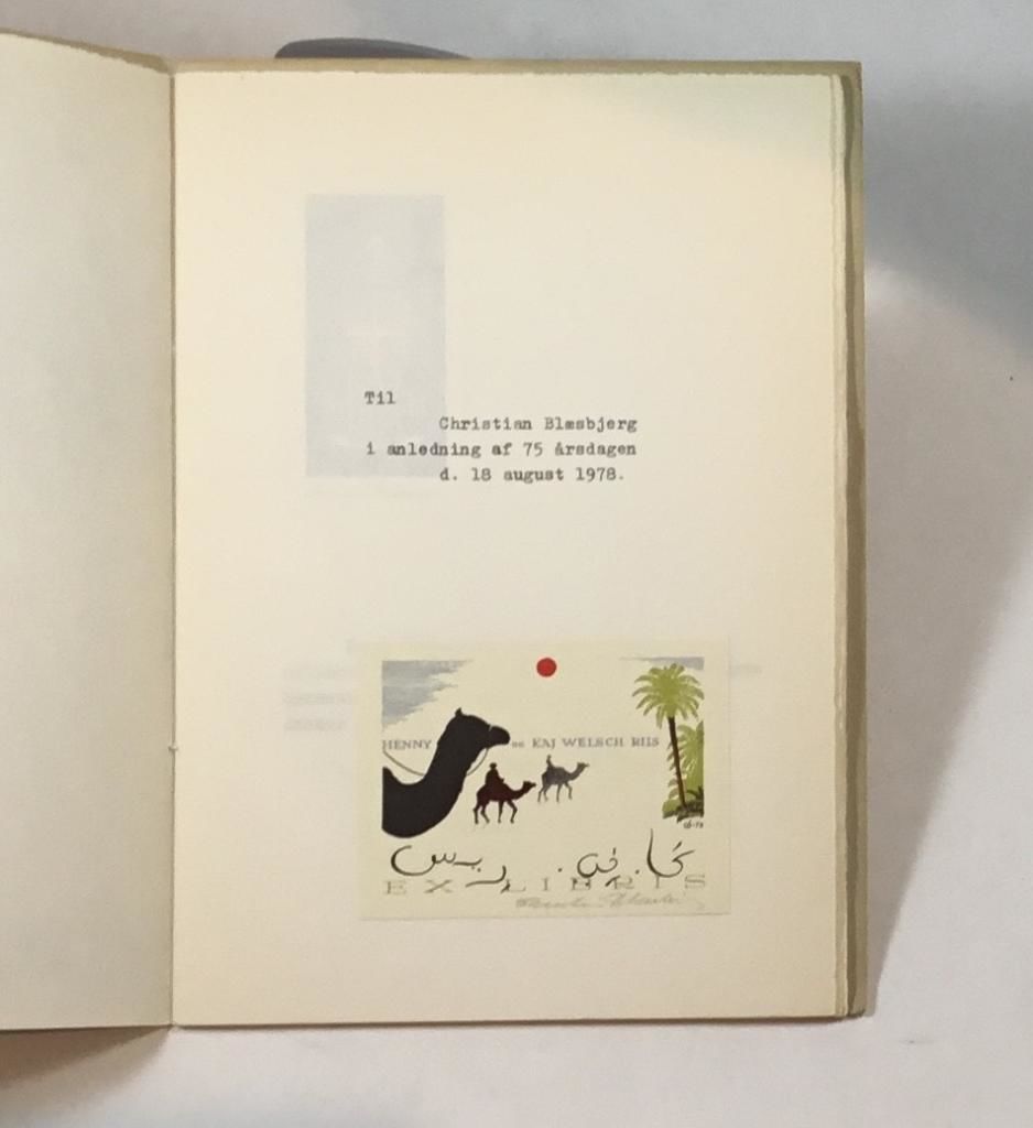 * Unik bog (iflg. vedlagt seddel). Privat gave fra exlibris-entusiasterne Henny og Kaj Welsch Riis til grafikeren Christian Blæsbjerg med et udvalg af givernes smukke signerede exlibris (heraf 2 af Blæsbjerg). Flere meget sjældne (trykt i 15 eksemplarer).