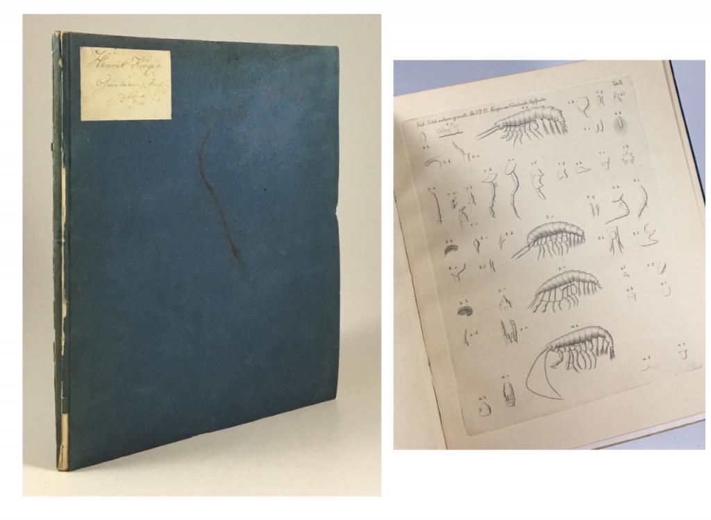(Som Tillæg: Beskrivelse af nogle andre grönlandske Kræbsdyr, og Optælling af Kræbsdyrklassens hidtil bekjendte grönlandske Arter, i Forbindelse med nogle zoologisk-geographiske Bemærkninger over de boreale Krustaceer). Videnskabernes Selskabs naturvid, og mathem. Afh. VII Deel, Det Kongelige Danske Videnskabernes Selskab, København (1838). 4°. P. 232-326. Med 4 kobberstukne tavler. Samt. blå kartonnage. Falsene svage. Titelbladet plettet,