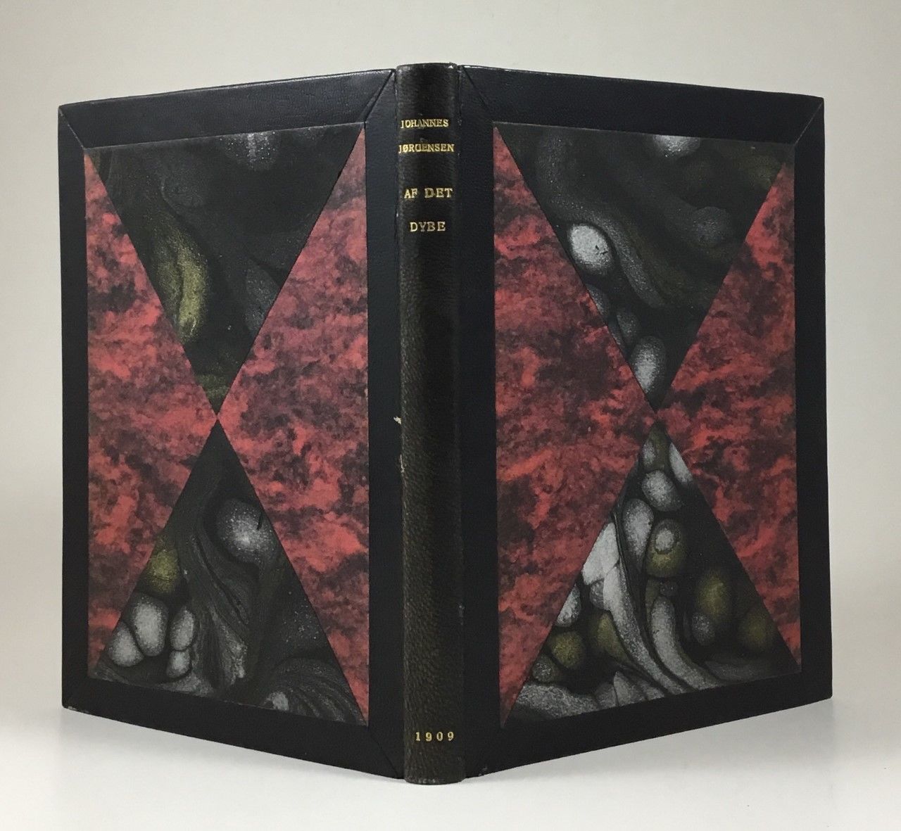 Gyldendal, København 1909. 74 sider. Indbundet med orig. omslag i et smukt halvbind med pålagt dekoration af marmoreret rødt og sort papir på forpermen, for- og bagsats af guldpapir samt tresidet grafitsnit.