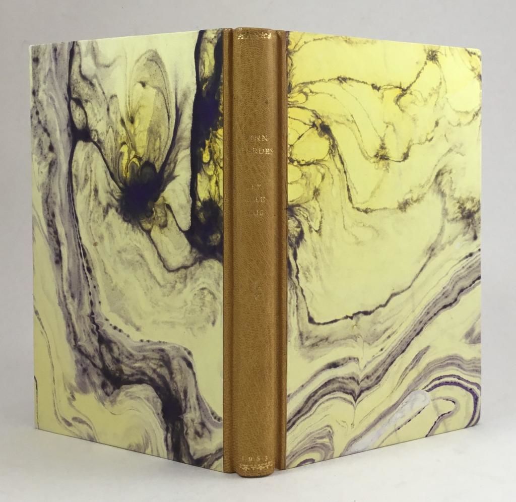 Gyldendal, København 1953. 99 sider. Indbundet med orig. for- og bagomslag og rygstribe i et halvbind af lyst skind med titel, årstal og vignet i guld på ryggen, gulmarmoreret sidepapir og skjulte hjørner [V. Asholt].