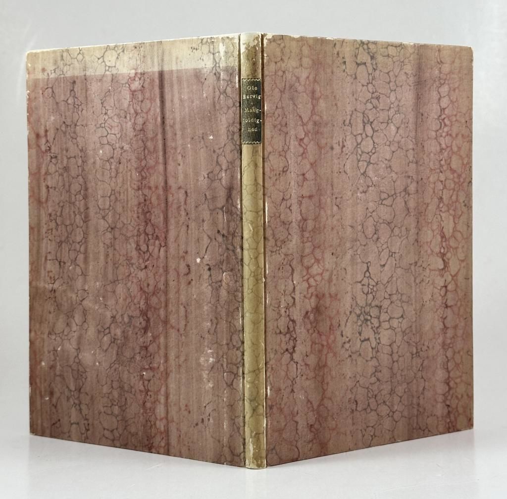 Rosendahl og Jørgensens Forlag, København 1945. 51 sider. Indbundet ubeskåret med orig. omslag og rygstribe i et kønt papirbind med rygtitelfelt af brunt skind (Birgitte Dall; ej signeret, men noteret med blyant af Hans Hvass, hvis ejerinitialer er trykt med guld på inersiden af bagpermen). Bindet med skrammer.