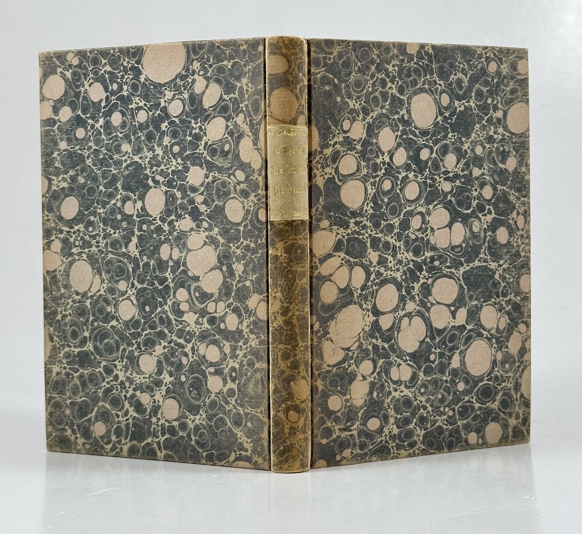 Trykt paa Forfatterens Forlag, København 1818. 136 sider. Smukt samtidigt marmoreret papirbind med rygtitelfelt af cremefarvet skind.