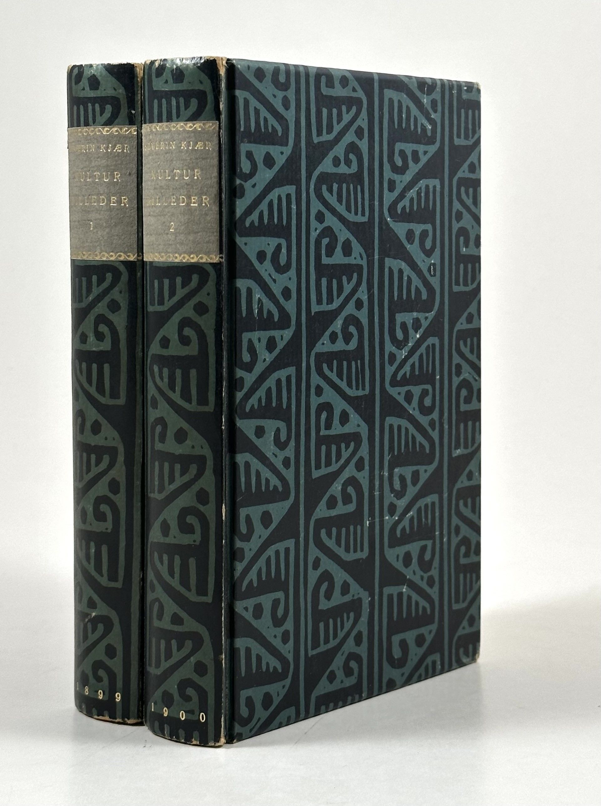2 bind. V. Pio, København 1899-1900. 388 + 340 sider. Indbundet ubeskåret med orig. omslag i 2 kønne senere uniforme blåmarmorerede papirbind (Harry Larsen).