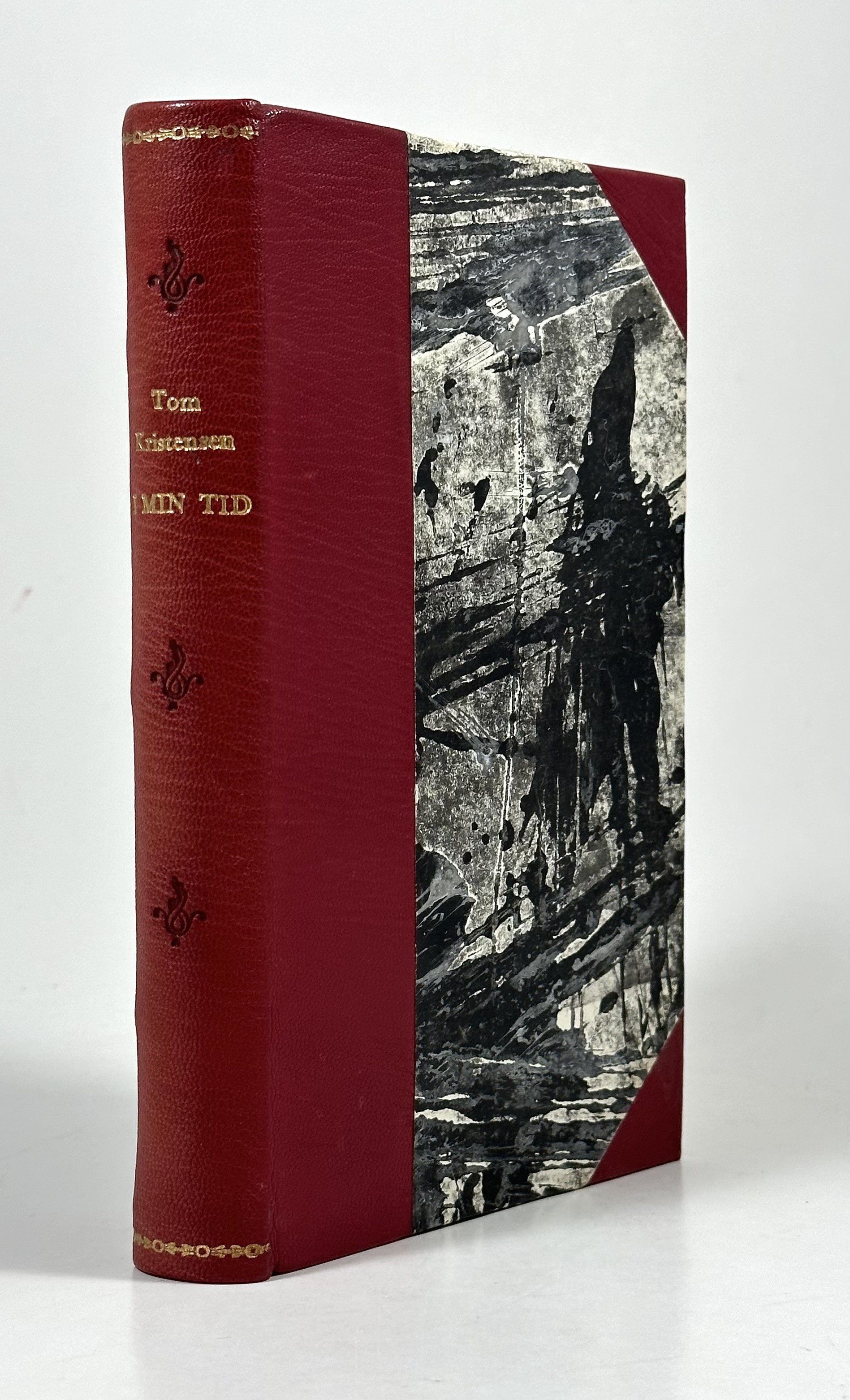 Gyldendal, København 1963. 208 sider. Indbundet med orig. for- og bagomslag i halvbind af rødt gedeskind.