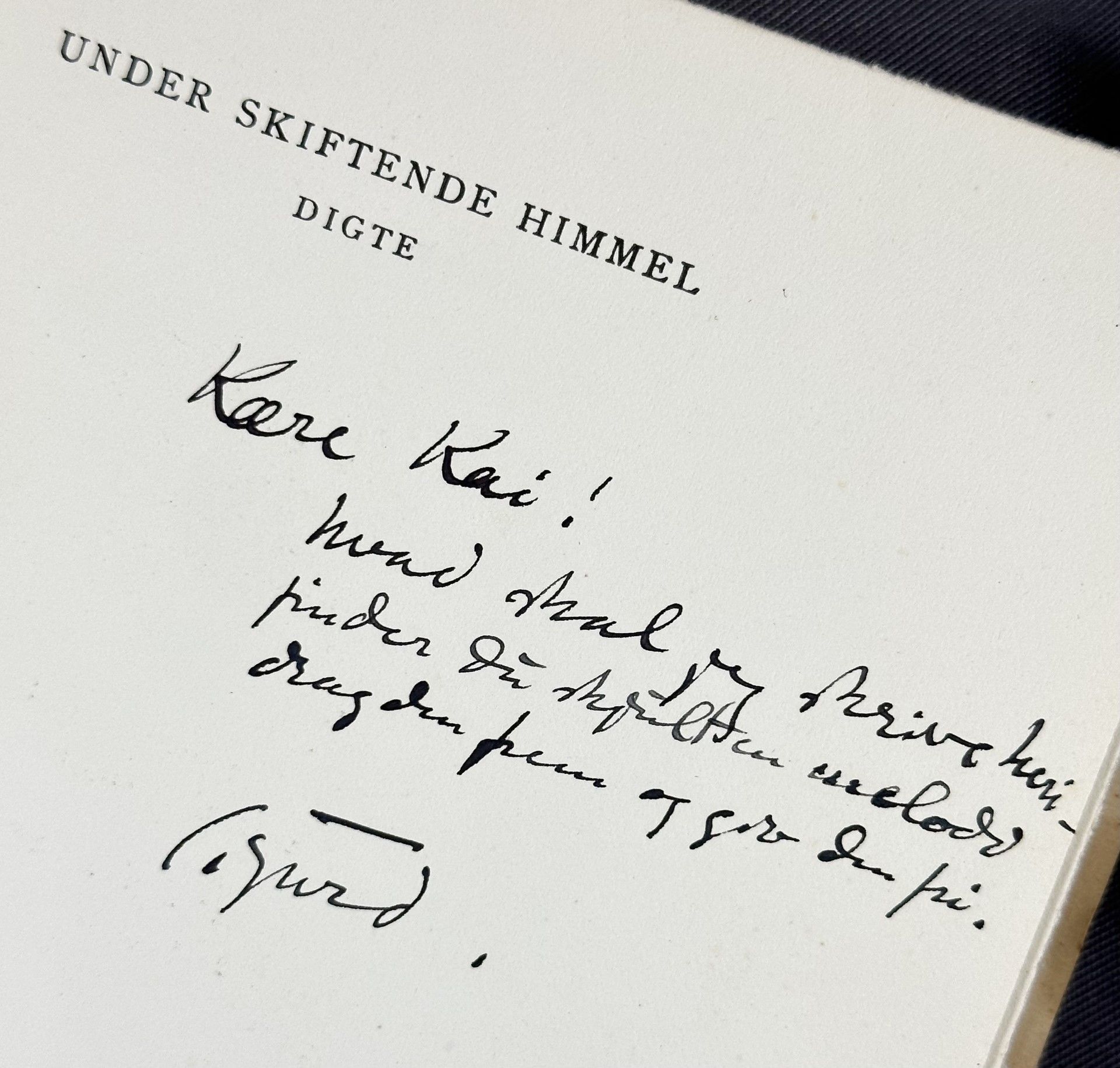 * Med stor versificeret dedikation fra Sigurd (Swane) til Kai (Rosenberg(?)).