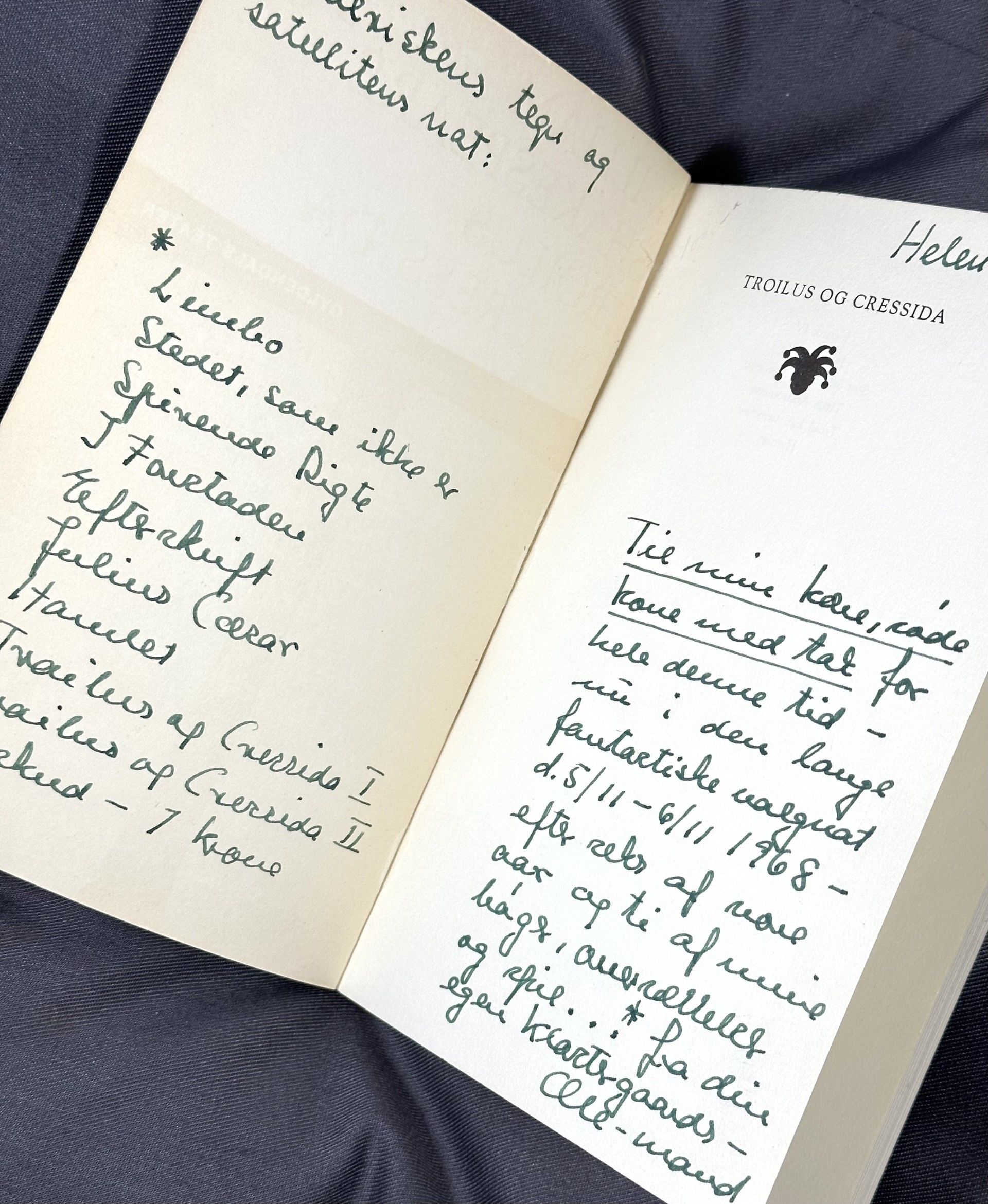 * Med meget stor dedikation, på smudtitelbaldet og indersiden af foromslaget fra Ole (Sarvig) til hustruen Helen.