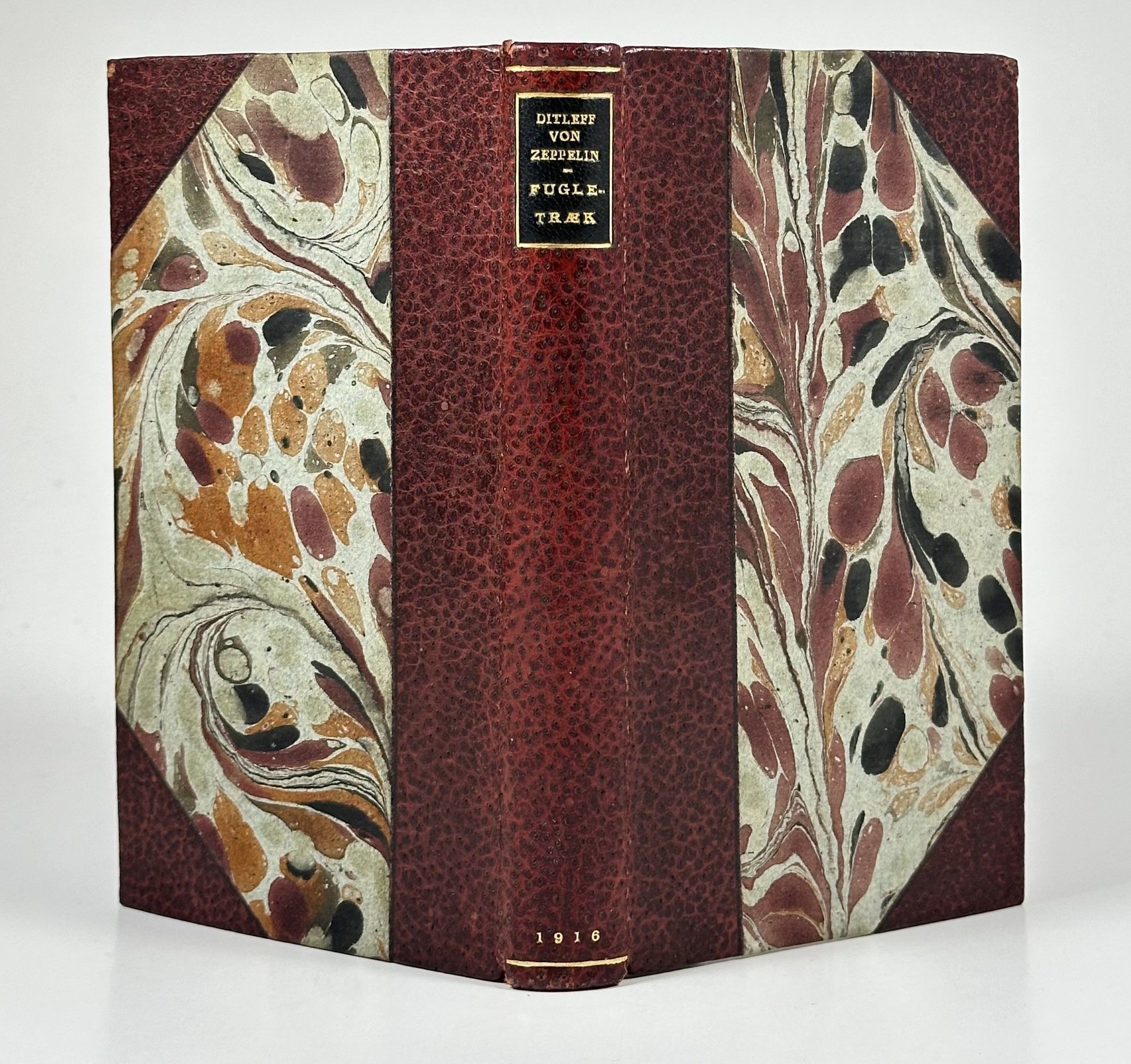 Gyldendal, København 1916. 1. udgave. 8vo. 136 sider. Indbundet ubeskåret med orig. omslag i et mørkt rødt halvbind af kalveskind med topguldsnit, sort rygtitelfelt og guldtrykt titel og årstal (Gyldendal). Ryg og hjørner med småskrab. Øverste hjørne stødt. Exlibris på forsatsbladet. Privat tilskrift på forsatsbladet.