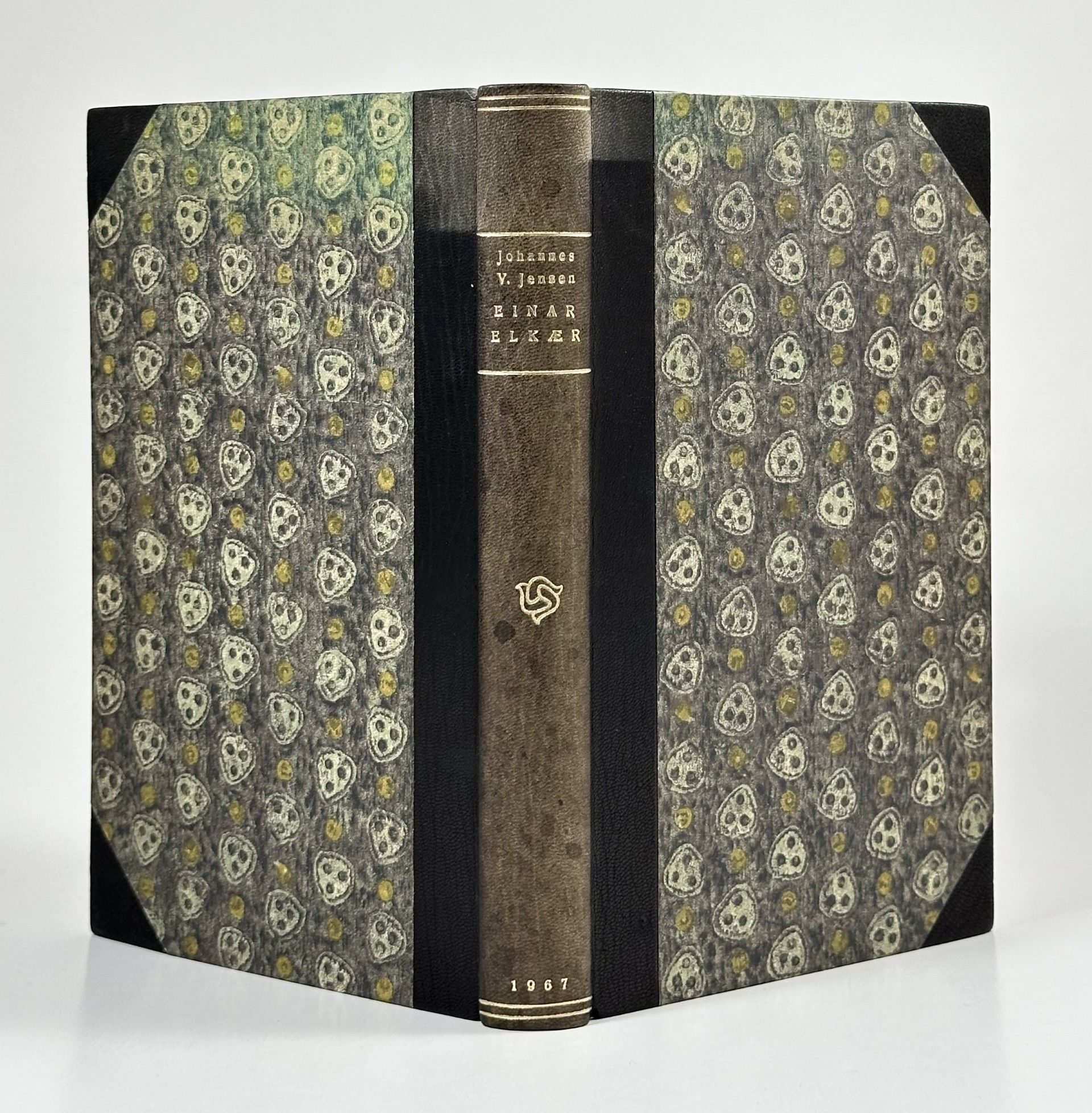 Gyldendal, København 1967. 2. uændrede oplag. 210 sider. Indbundet ubeskåret med orig. omslag og smudsomslag i et smukt halvbind af sort gedeskind med Jensens triskele-bomærke i guld på ryggen. Exlibris. Ryggen lettere falmet.