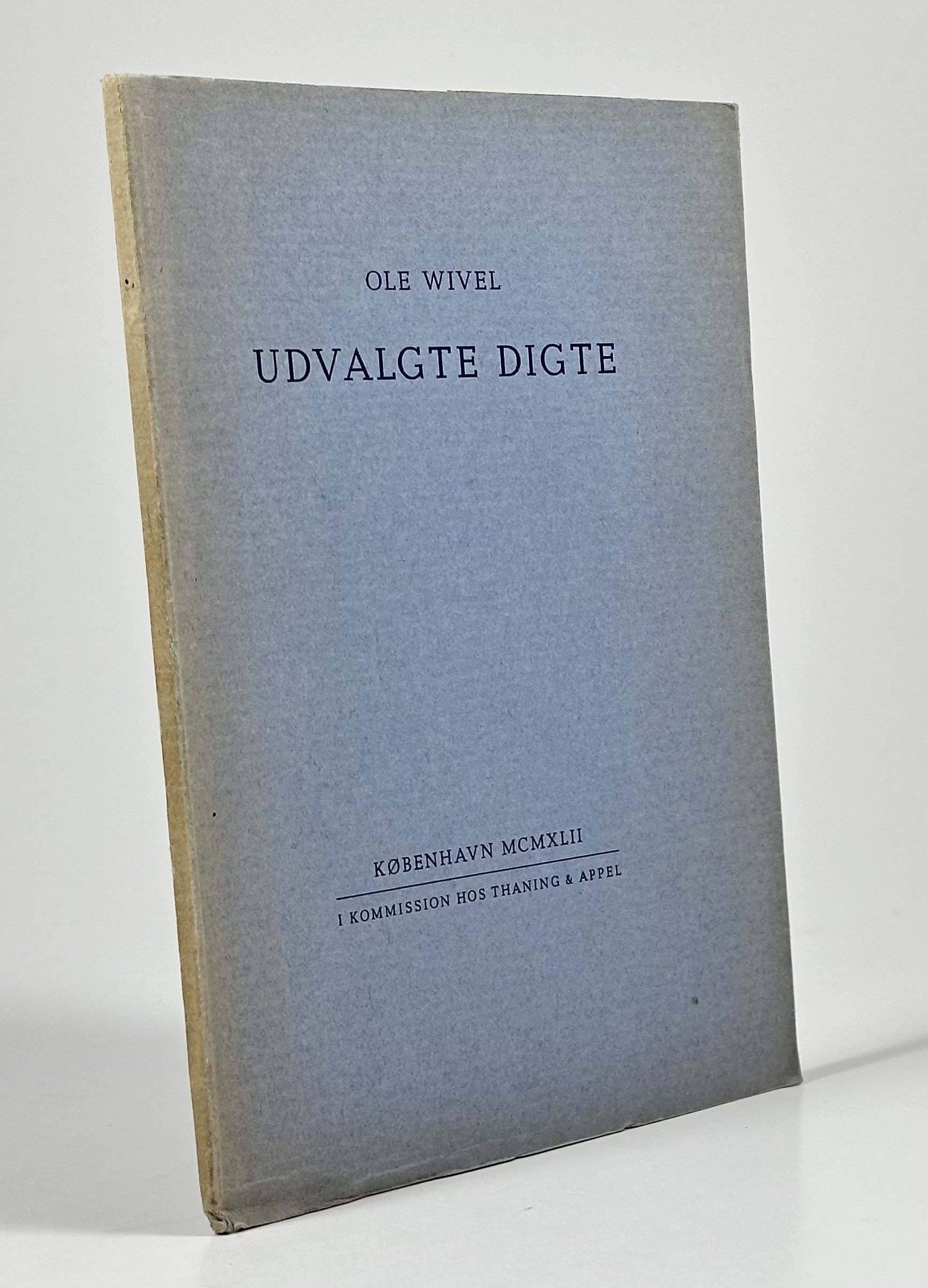 * Med dedikation fra Ole Wivel (1968). ** Et af 350 eksemplarer. Nummereret eksemplar. Indeholder ungdomsdigte. Wivel skriver i et lille efterskrift: "Ingen af de tre manuskripter "Digte" 1940, og to utrykte manuskripter fra 1941, hvoraf dette udvalg er gjort, vil komme offentligheden for øje. Hensigten med "Udvalgte Digte" har da været, af forfatterens tidligste produktion at udvælge nogle digte til en førstefremtræden for det ukendte læsende publikum". Ak, ja.