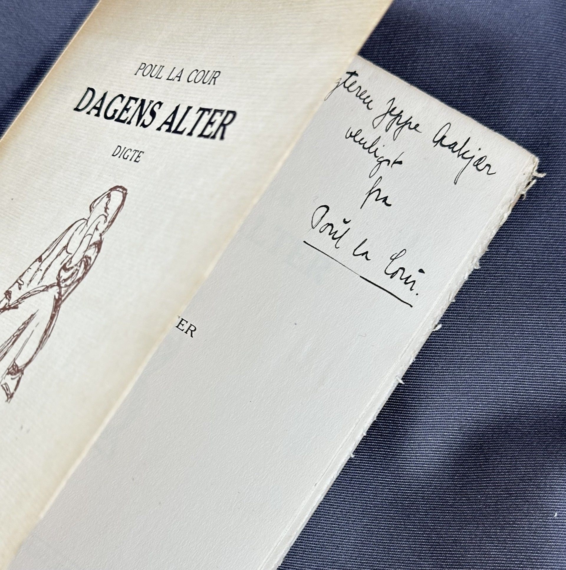 * Med dedikation fra Paul la Cour (der her staver sig Poul, som på bogens omslag) til Jeppe Aakjær. Herligt associationseksemplar af Paul la Cours debut.