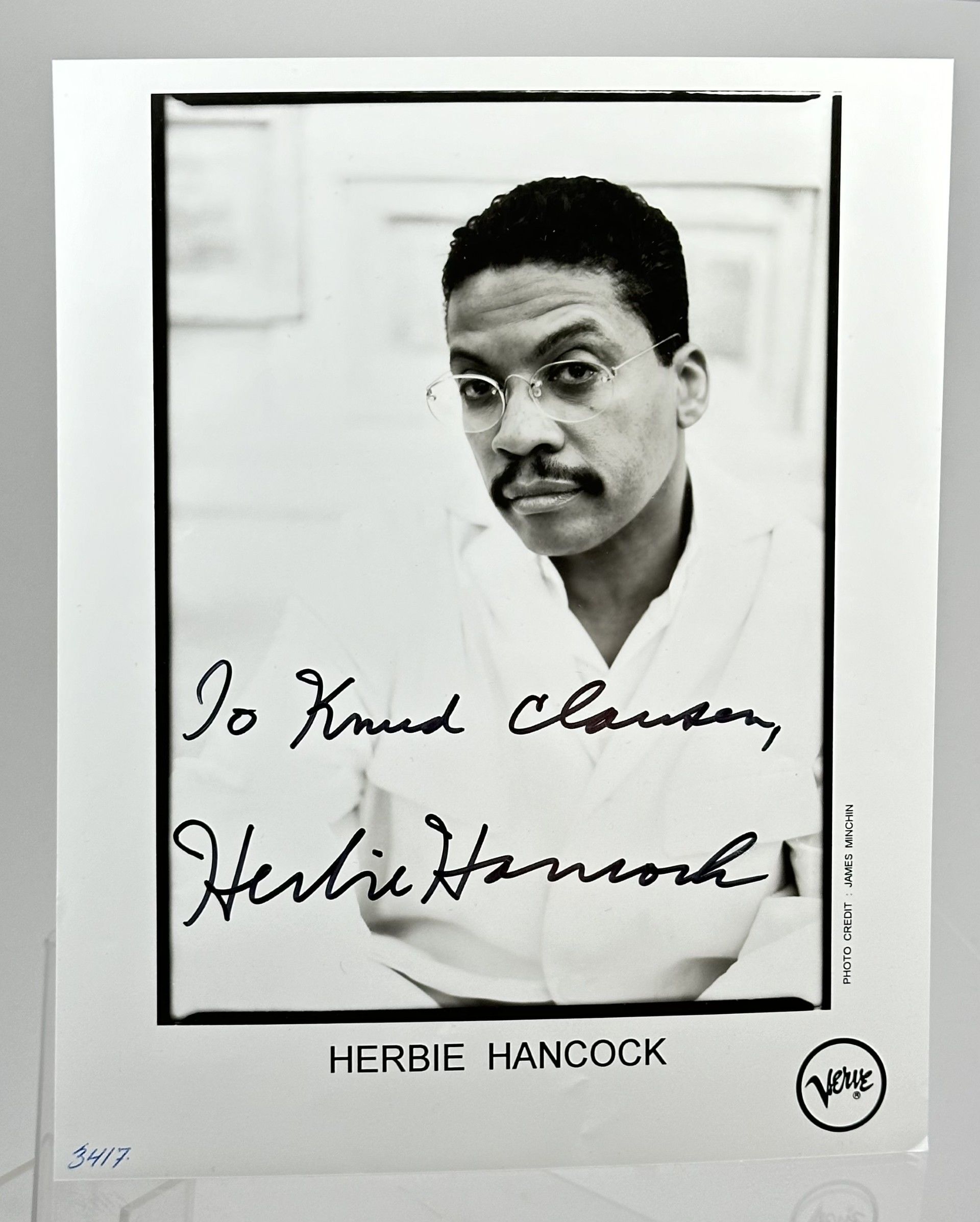 * Nice autograph to Danish collector Knud Clausen from fantastic jazz keyboard player Hancock [b. 1940].