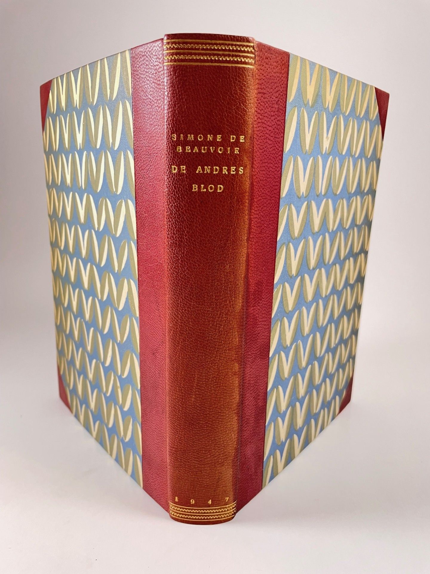 Folmer Christensens Forlag, København 1947. 240 sider. Indbundet ubeskåret med orig. omslag i et elegant halvbind af rødbrunt gedeskind med rygforgyldning og Salto-sidepapir. Forpermens rygskind meget svagt plettet.