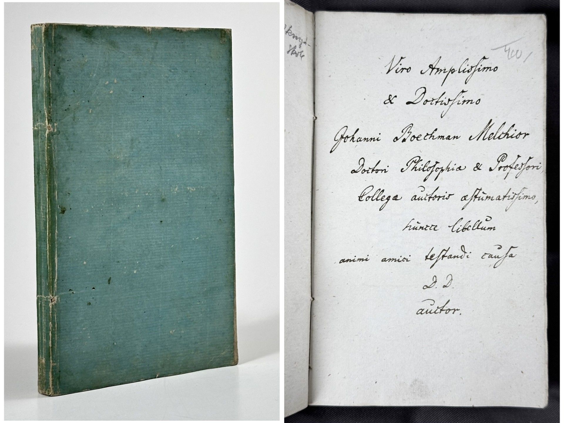 ** Med dedikation fra forfatteren til hans Bøchmann Melchior, der var udnævnt til professor på Herlufsholm. Bogen har da også et stempel fra Herlufsholms bibliotek på titelbladet.