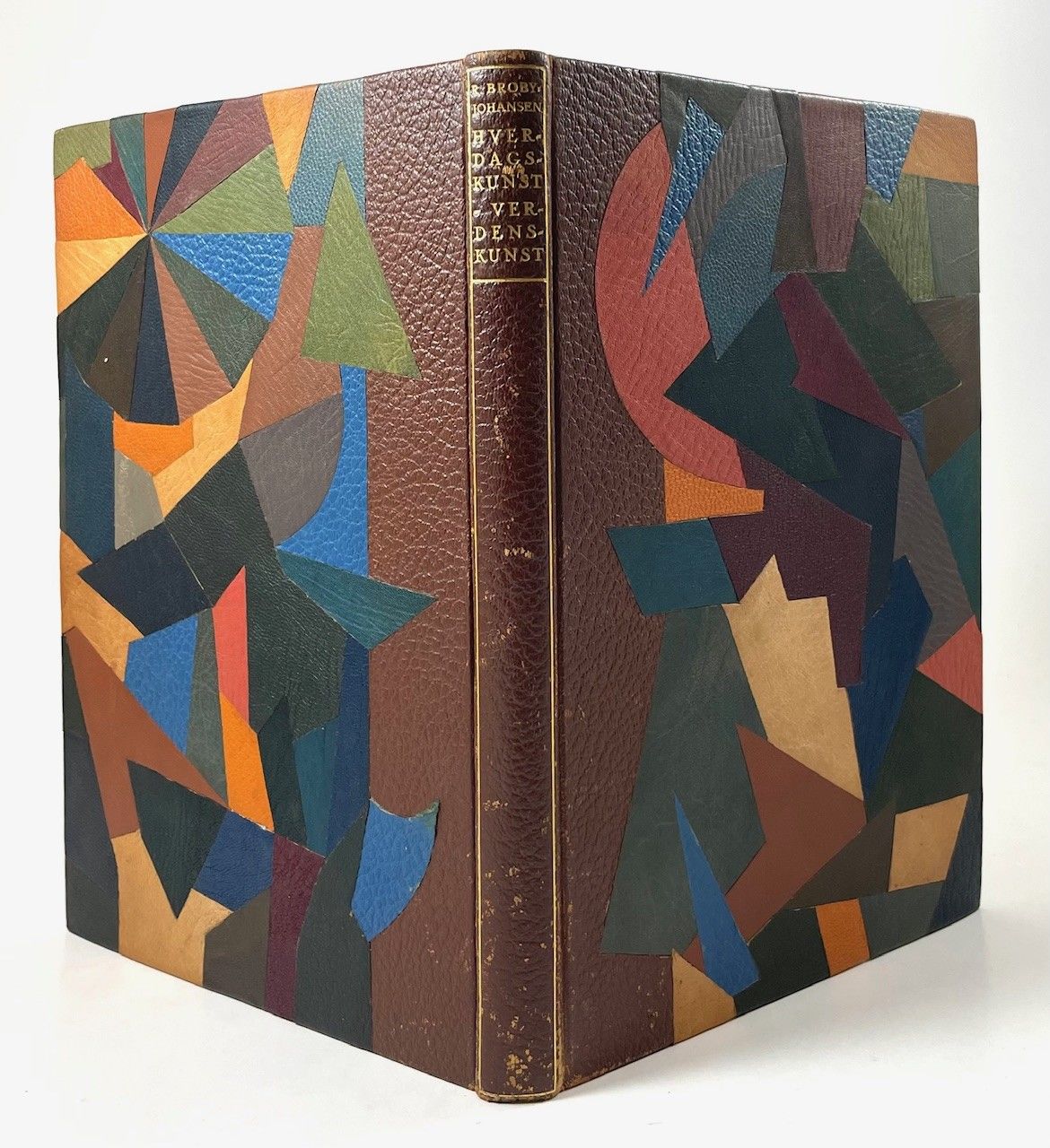 Gyldendal, København 1945. 4°. 204 sider. Illustreret i s/h og farver. Indbundet ubeskåret med originalt foromslag i et originalt helbind med genbug af skindryggen fra forlagsbindet (brunt kalveskind) kombineret med pålagt skind af forskellige farver og mønstre på permerne.