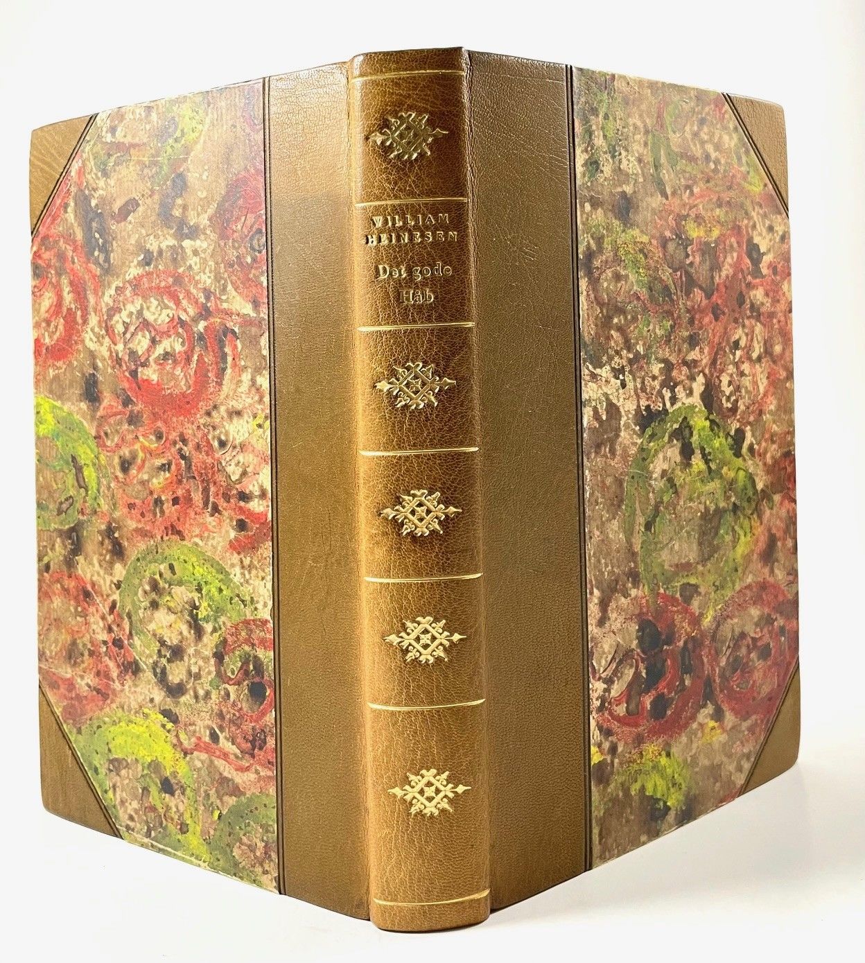 Gyldendal, København 1964. 3. oplag. 346 sider. Indbundet ubeskåret med orig. omslag og smudsomslag i et smukt halvbind af brunt gedeskind med rygforgyldning (Rigmor Juncker-Jensen). Lille skramme på bagomslaget.