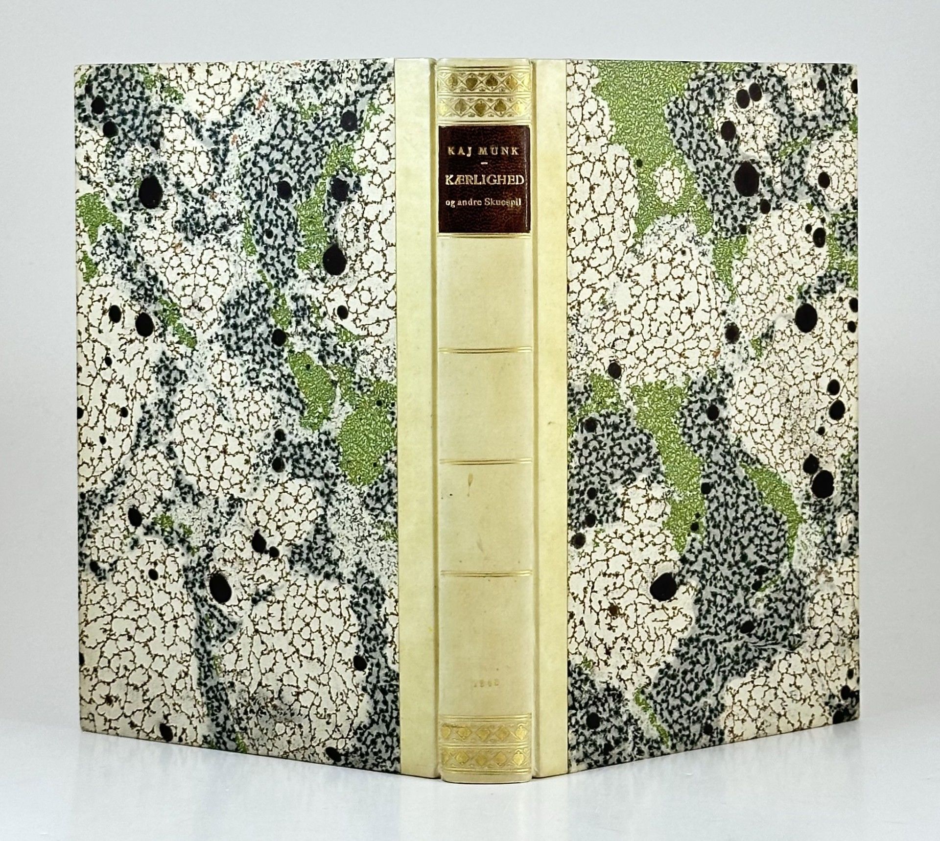 Nyt Nordisk Forlag/Arnold Busck, København 1948. 383 sider. Indbundet ubeskåret med originalt for- og bagomslag og rygstribe i et dejligt halvbind med ryg og skjulte hjørner af pergament og med rig rygforgyldning (Oscar Jacobsen).