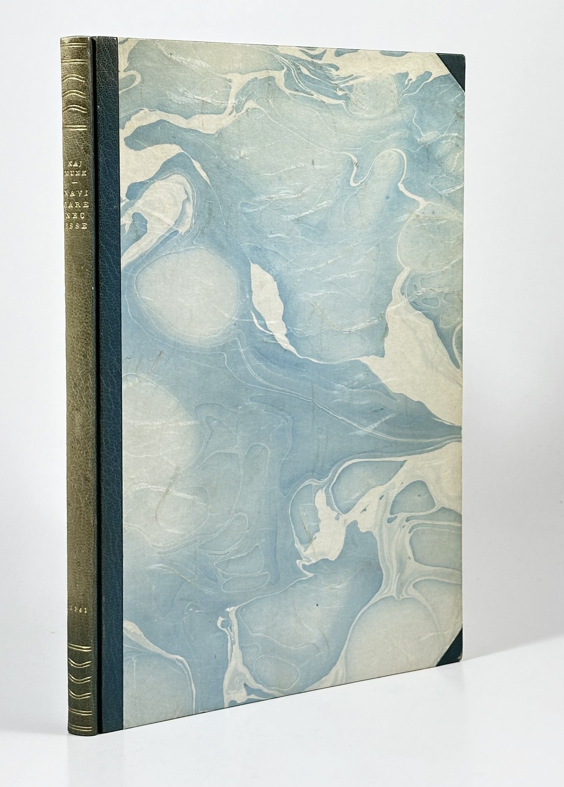 Det Berlingske Bogtrykkeri, København 1941. 4°. 86 sider. Indbundet ubeskåret med de orig. omslag og ryggen i et elegant halvbind af grågrønt gedeskind med rygforgyldning (Henrik Park 1943). Ryggen let falmet.