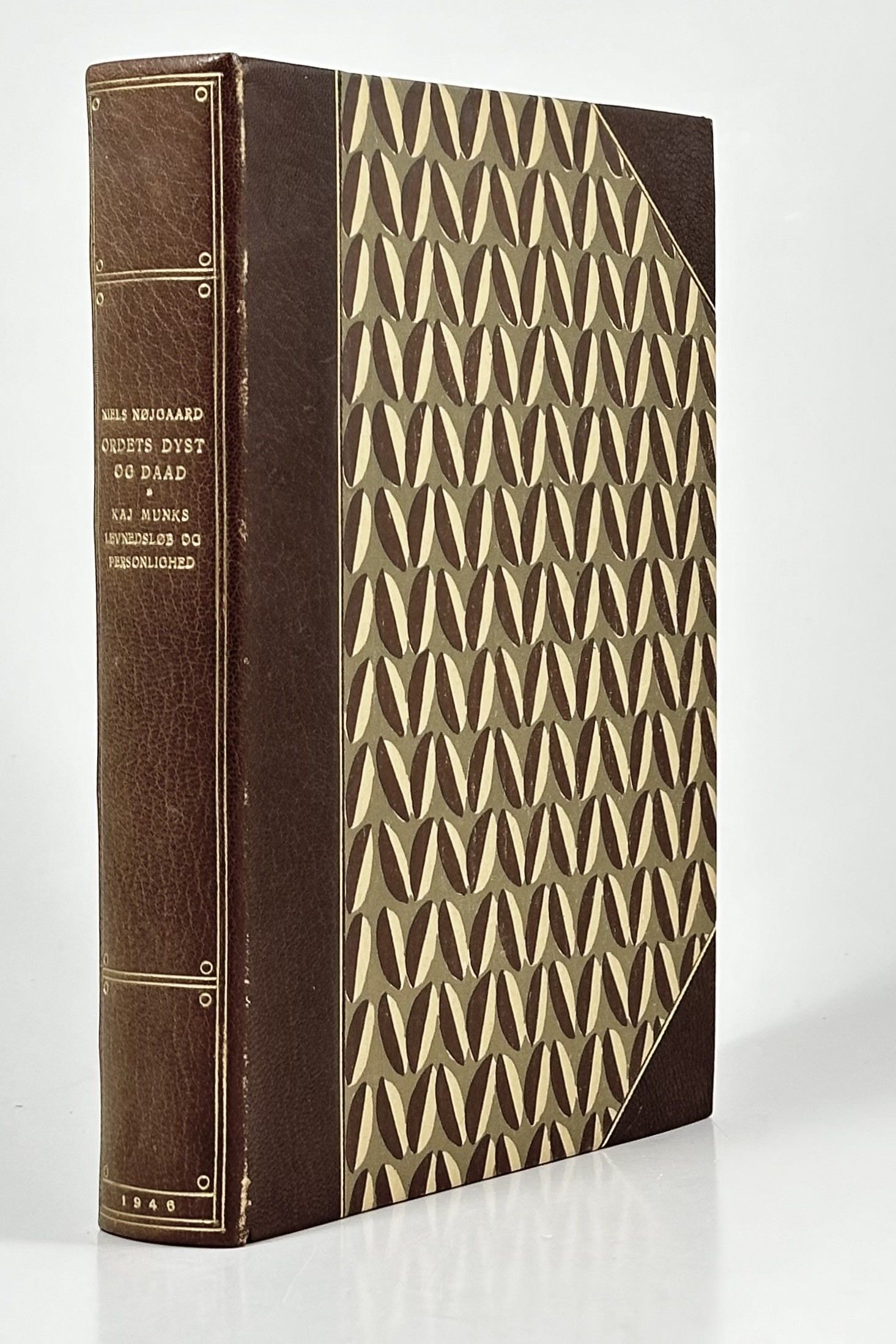 Nyt Nordisk Forlag/Arnold Busck, København 1946. 4°. 511 sider. Illustreret med fotos i s/h. Indbundet med orig. omslag og smudsomslag i et elegant halvbind af brunt gedeskind med matchende sidepapir af Axel Salto.