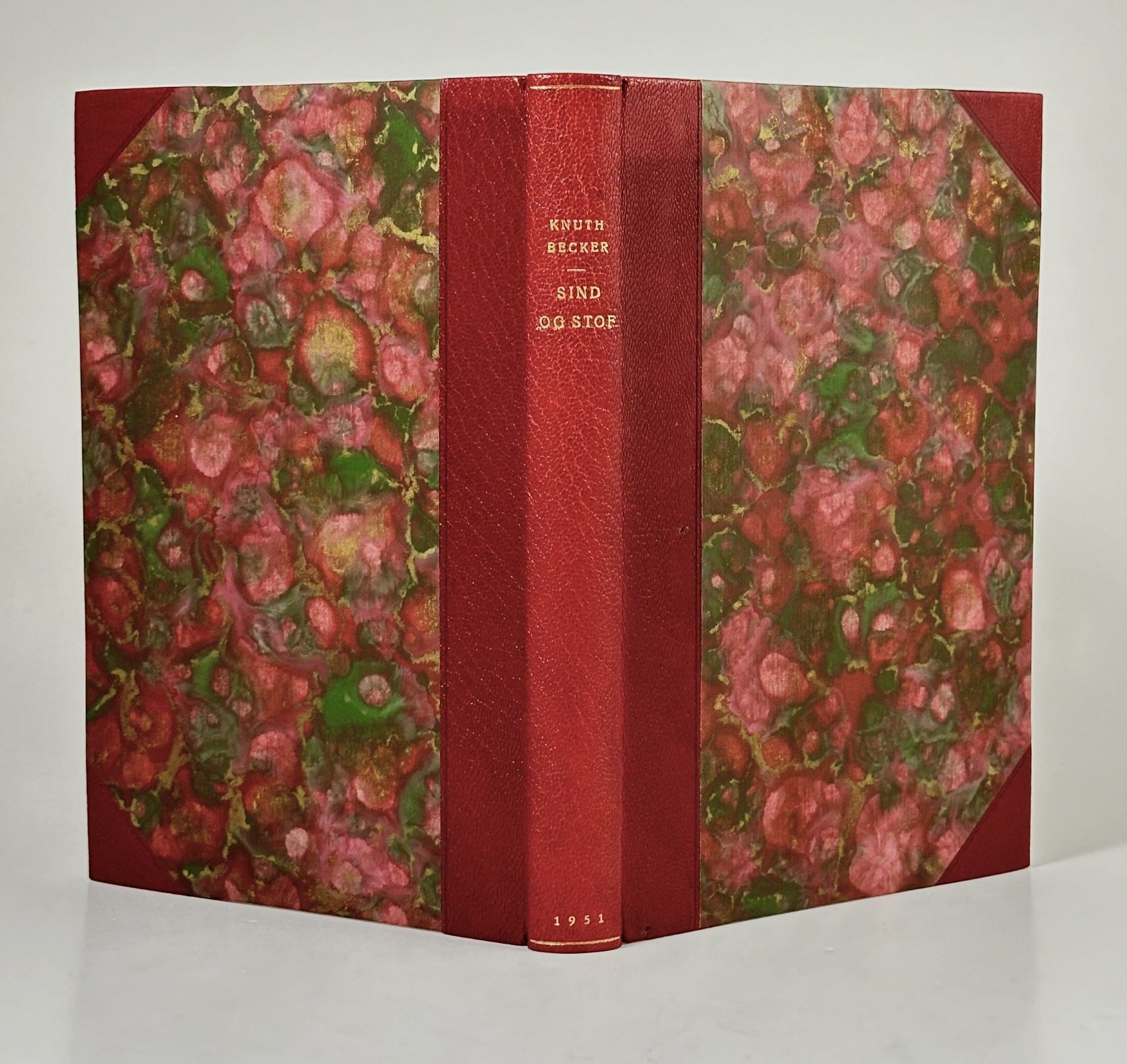 Gyldendal, København 1951. 198 sider. Indbundet ubeskåret med orig. omslag i et smukt halvbind af rødt gedeskind med matchende sidepapir og topsnit (Henning Jensen, ikke signeret).