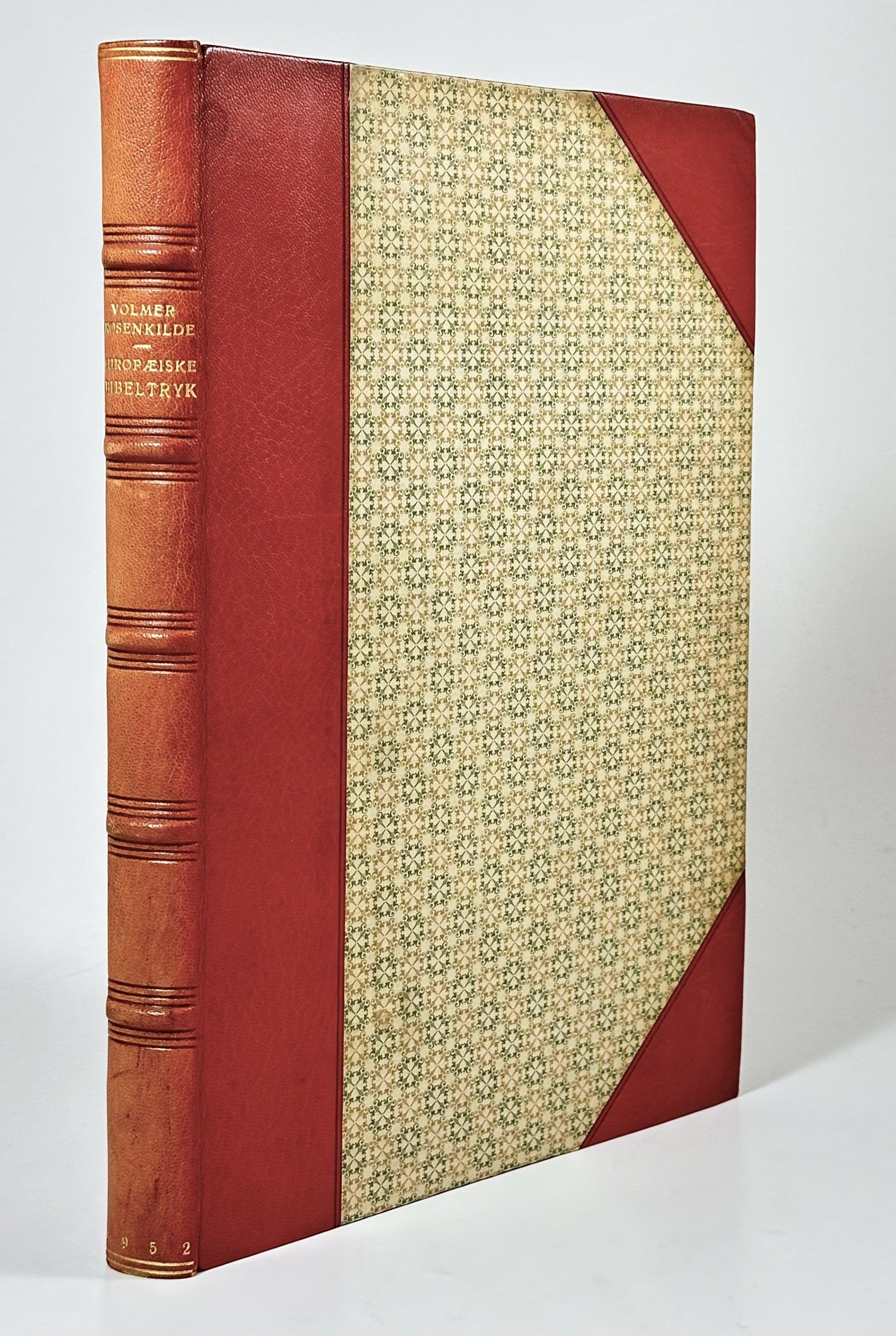 K. Rosendahls Bogtrykkeri, Esbjerg 1952. 4to. 237 sider. Enkelte illustrationer i s/h. og farve. Indbundet med orig. omslag i et smukt halvbind af rødt gedeskind med blindpræget rygdekoration med topguldsnit. Svag plet på forpermens rygskind.