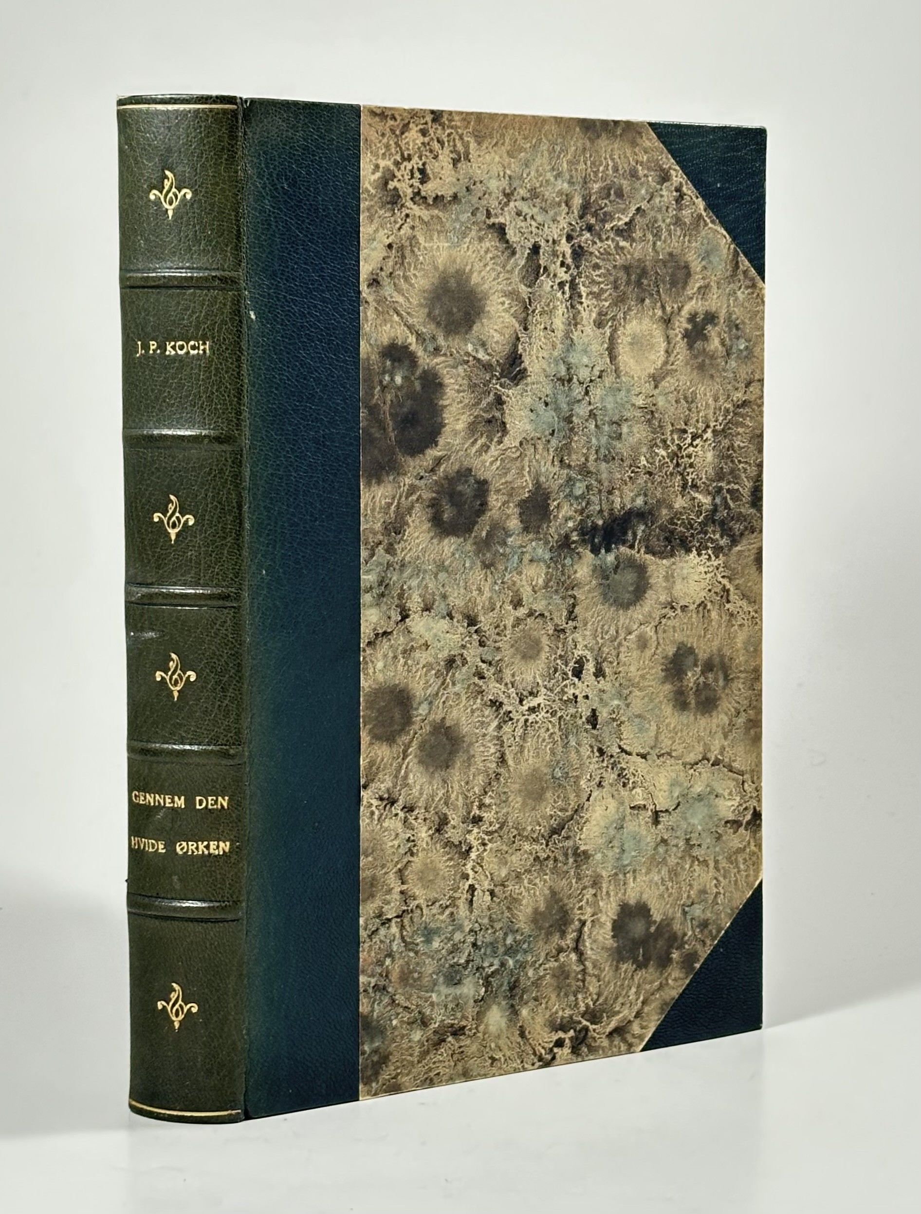 Gyldendal, København 1913. 4°. 286 sider. Illustreret i s/h. Indbundet i et smukt halvbind af grønt gedeskind med vignetter og rygtitel i guld. Ryggen ganske let falmet.