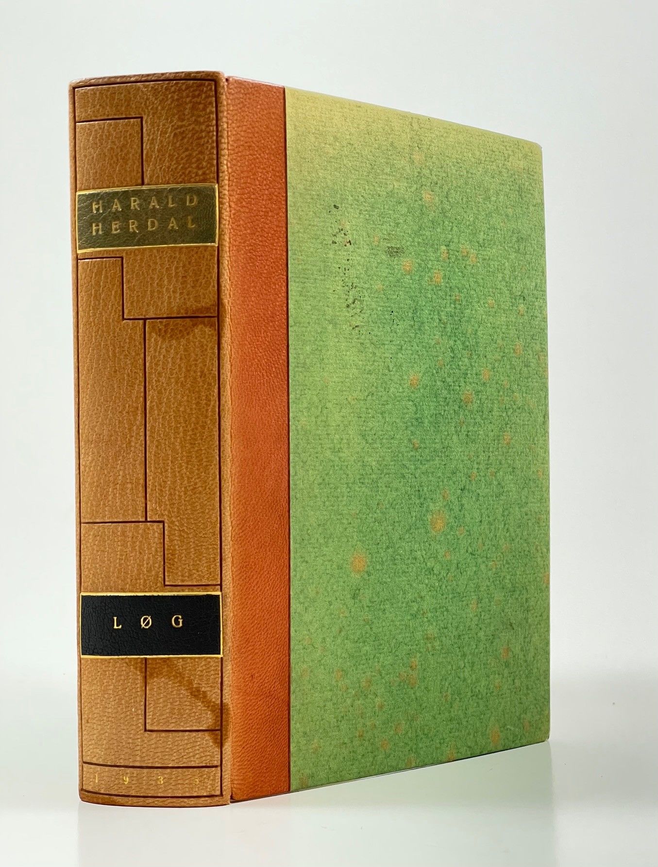 Steen Hasselbalchs Forlag, København 1935. 485 sider. Indbundet ubeskåret med orig. omslag og rygstribe i et smukt halvbind af lysebrunt kalveskind med rygdekoration i guld og blindpræg (Juul-Lassen). Exlibris (advokat Harald Pedersen). Ryggen svagt falmet og med et par pletter.