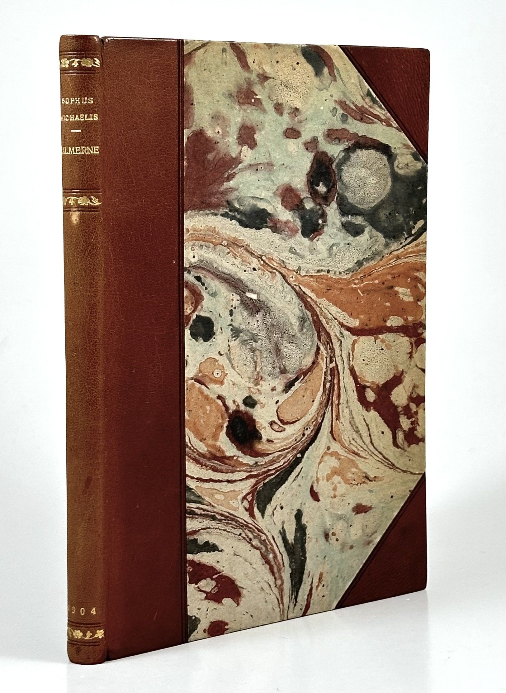 Gyldendal, København 1904. 141+(3) sider. Indbundet ubeskåret med orig. omslag i et kønt halvbind af brunt gedeskind. Exlibris (Ole Rostock & Harald Pedersen).