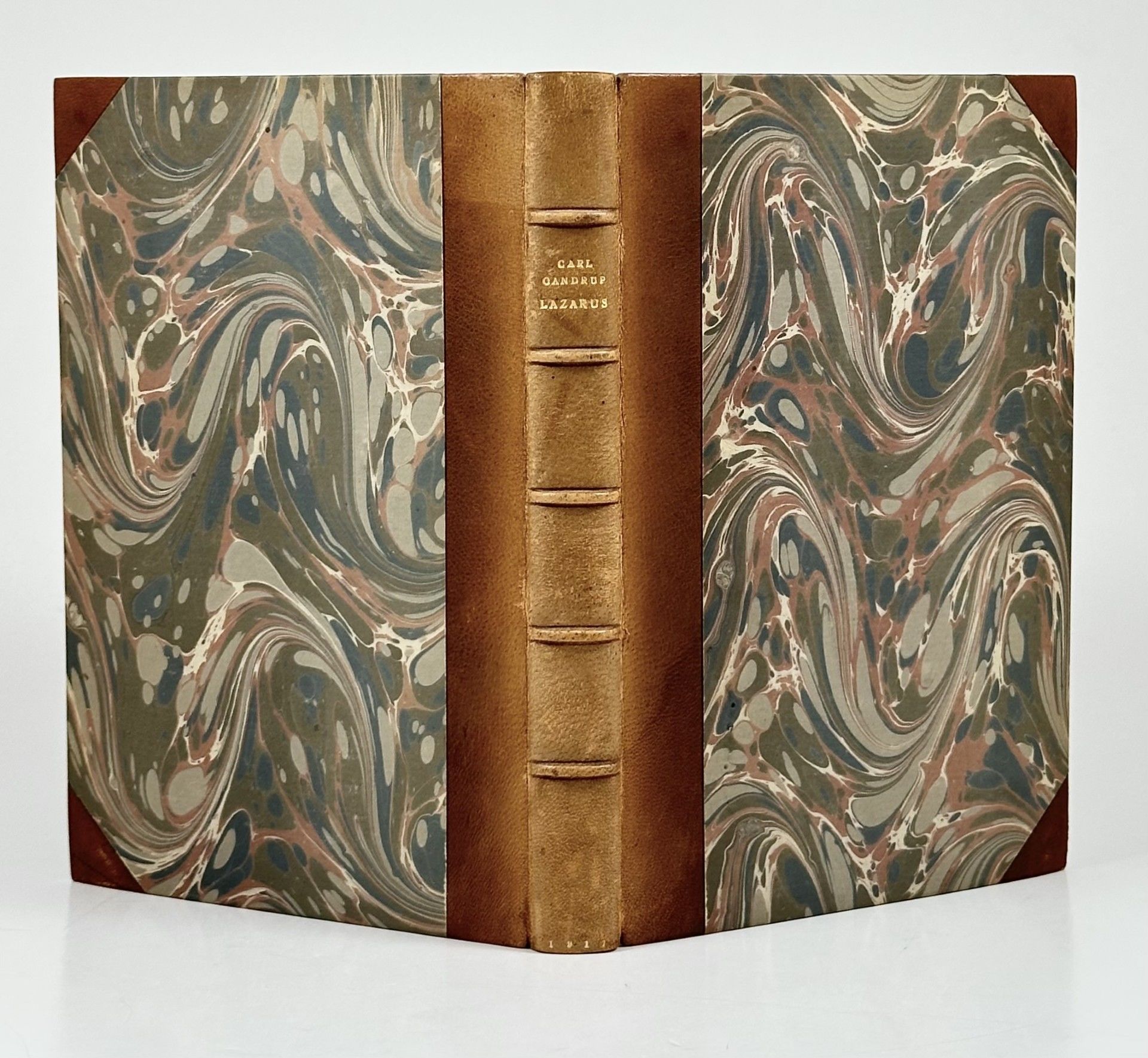 N.P. Madsens Boghandel, København 1917. 172 sider. Indbundet ubeskåret med orig. omslag i et smukt halvbind af brunt gedeskind (Birgit Kryger Larsen). Ryggen let falmet.