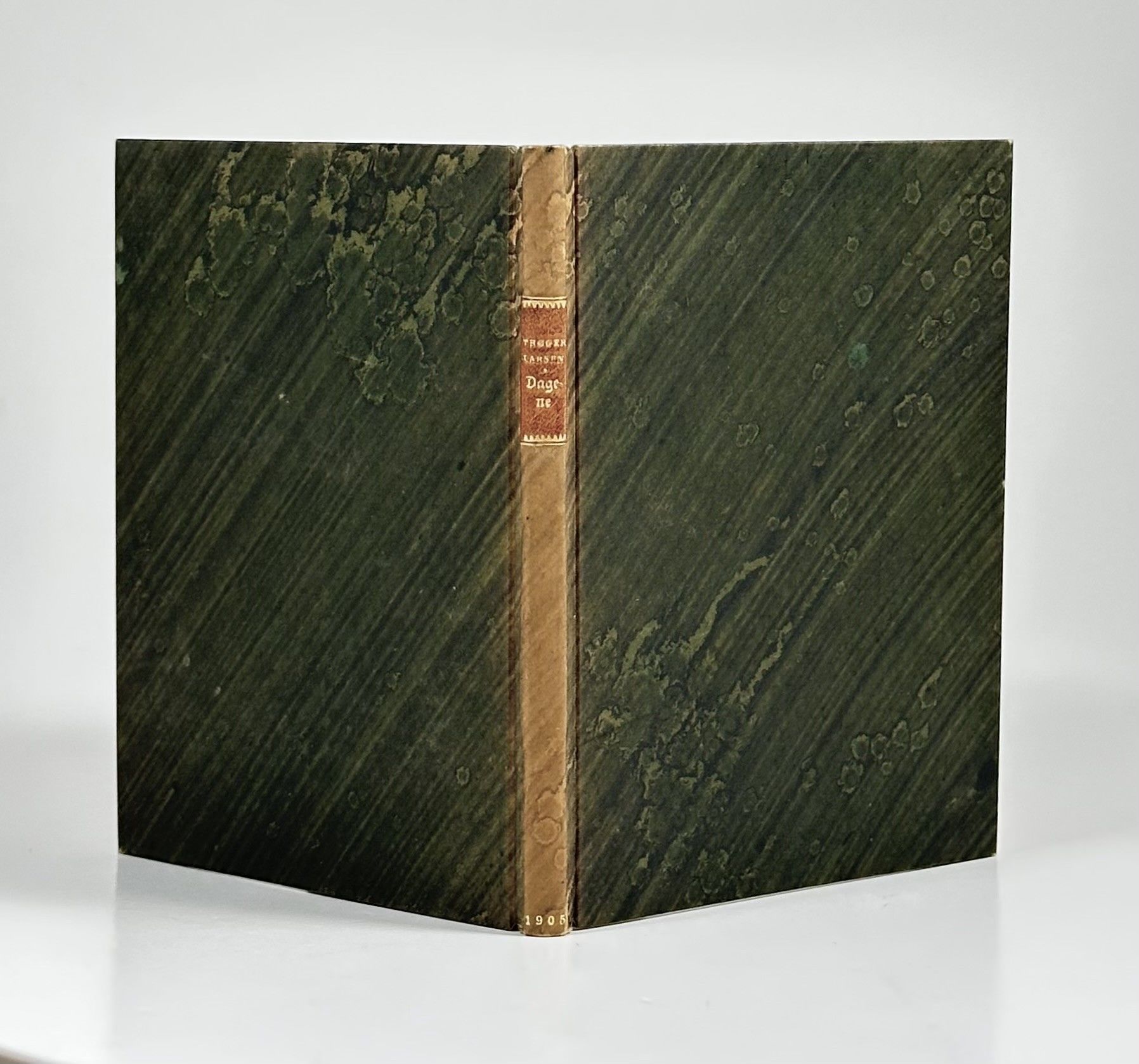 I Kommission hos Hvidehus Boglade, Vejle 1905. 62 sider. Indbundet ubeskåret med orig. omslag i et elegant papirbind [Birgit Kryger]. Exlibris [Harald Pedersen].