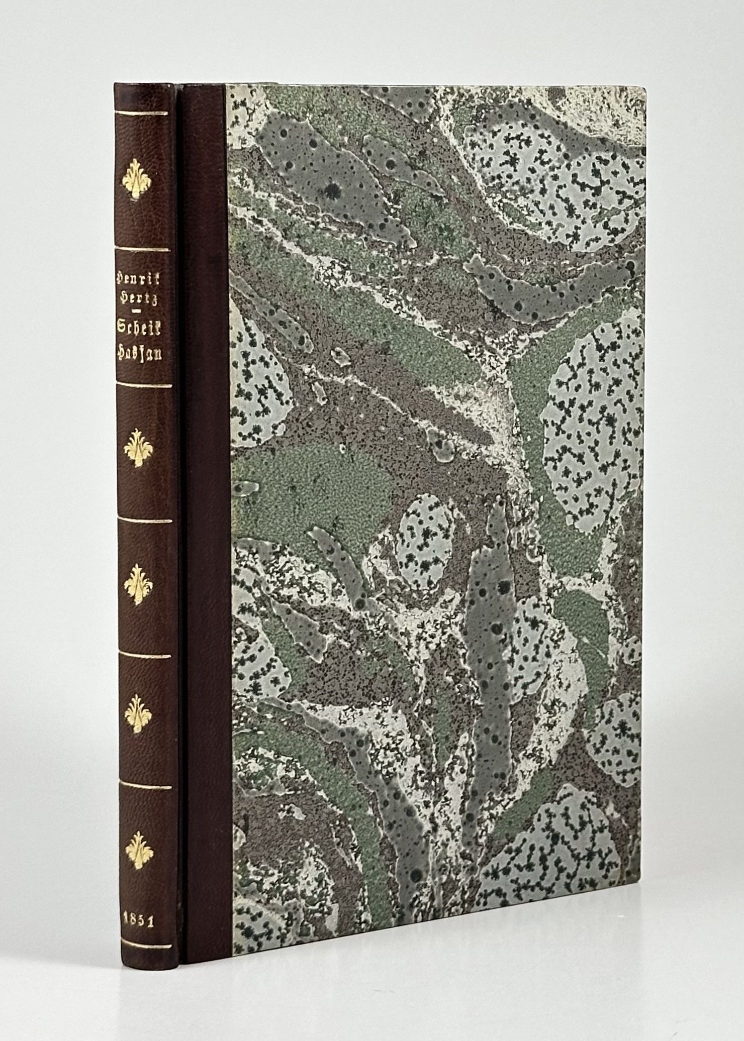 C.A. Reitzel, København 1851. 1. udgave. 109 sider. Indbundet ubeskåret med orig bogtrykt omslag i et smukt halvbind af mørkebrunt gedeskind [Oscar Jacobsen]. Exlibris [Harald Pedersen].