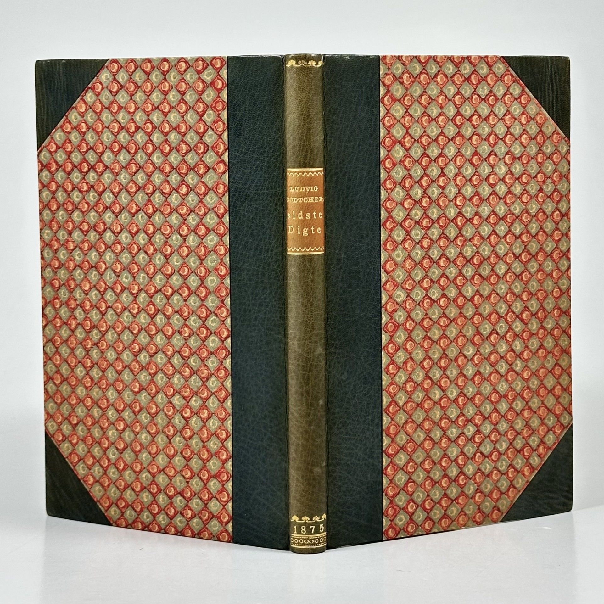 C.A.Reitzels forlag, København 1875. Lille 8vo. 100 sider. Indbundet ubeskåret med orig. omslag i et smukt halvbind af grågrønt gedeskind. Exlibris (Harald Pedersen).