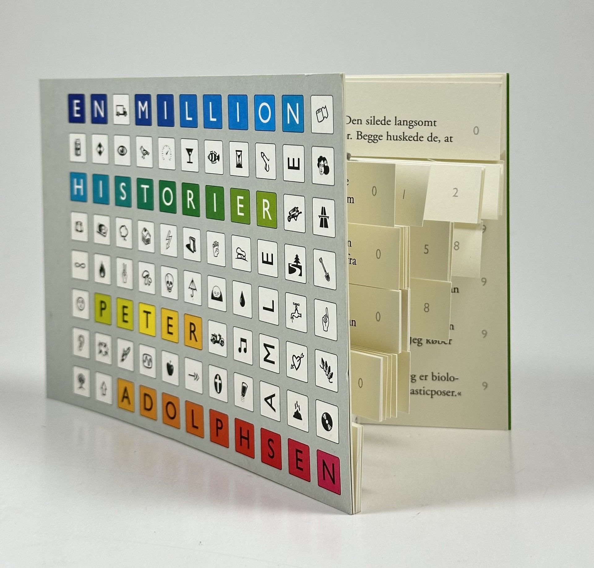 * 1. udgave. ** Herligt bogeksperiment; seks gange ni flapper kan læses i vilkårlig rækkefølge og frembringe de særeste historier.