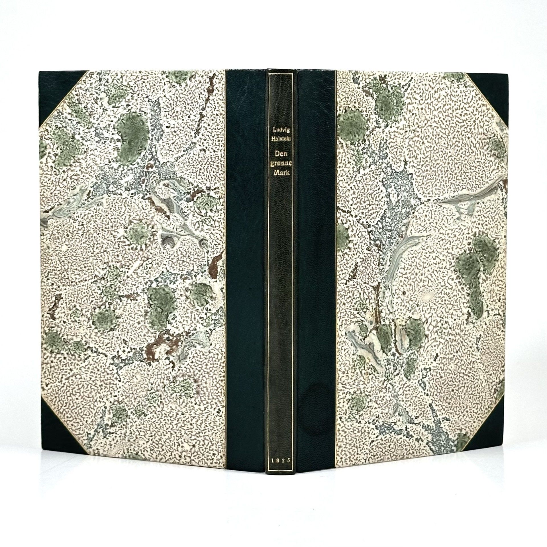 Gyldendal, København 1925. 109 sider. Indbundet ubeskåret med orig. omslag i et kønt halvbind af mørkegrønt gedeskind med rygforgyldning og topguldsnit (Juul-Lassen). Exlibris.