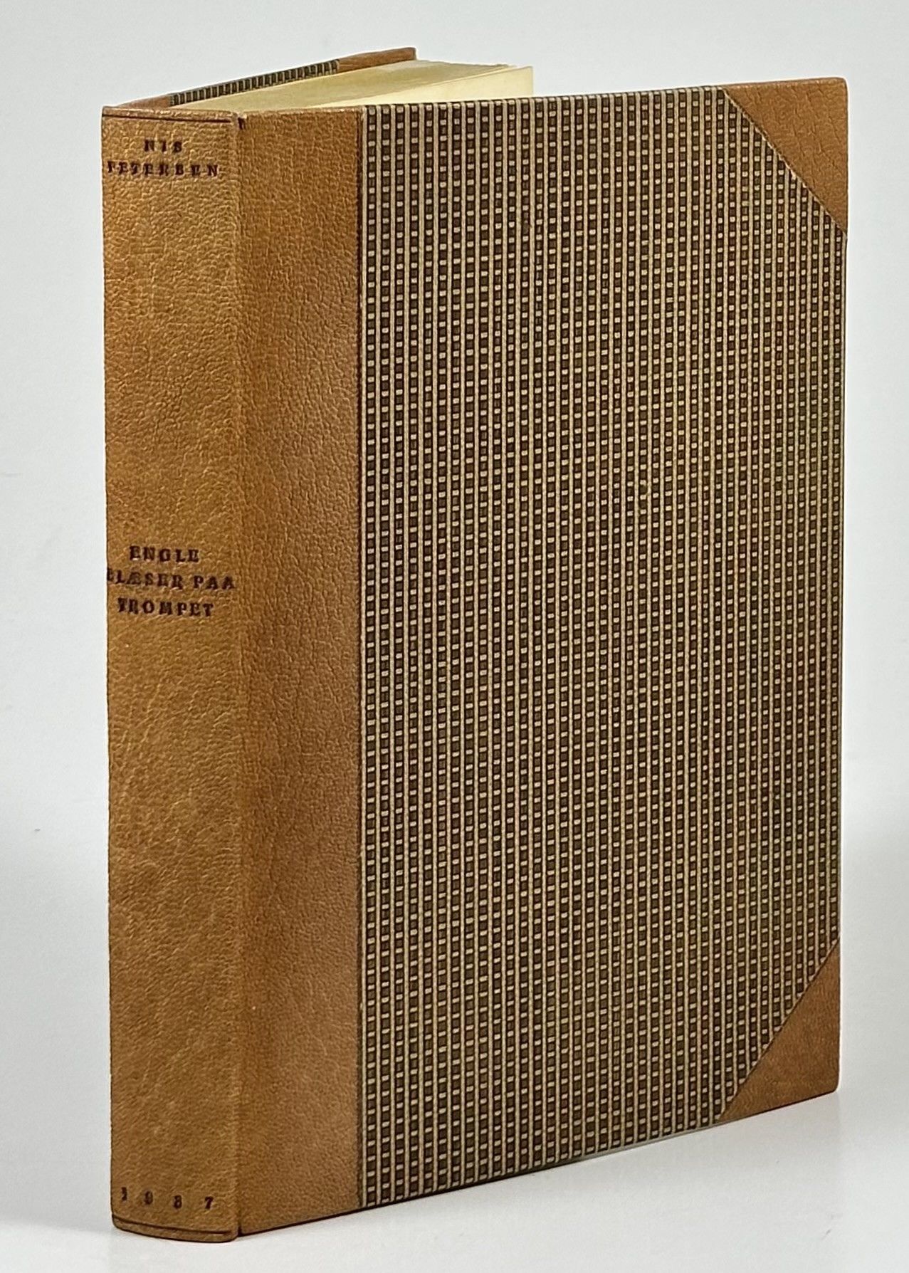 Gyldendal, København 1937. 1. oplag. 148 sider. Indbundet ubeskåret med orig. omslag og smudsomslag samt smudsomslagets rygstribe i et smukt halvbind af brunt kalveskind (Juul Lassen). Exlibris (Harald Pedersen).