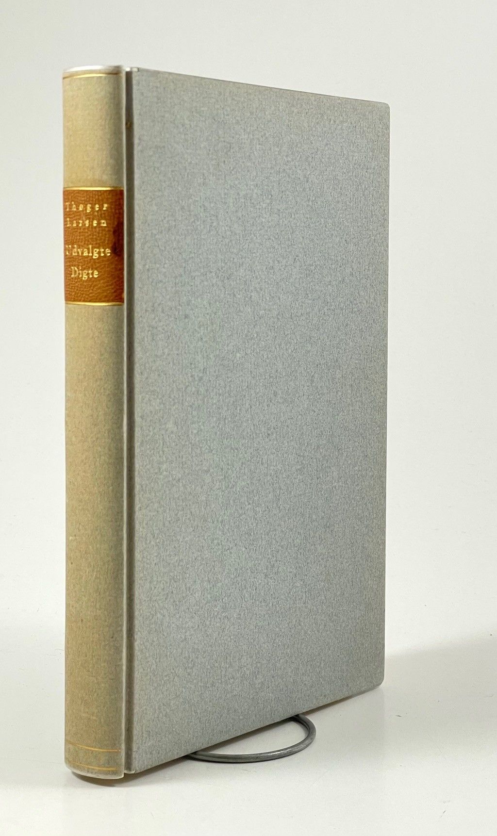Gyldendal, København 1963. 223 sider. Indbundet ubeskåret i et kønt lyseblåt papirbind med pergamentkapitæler og med rygtitelfelt af rødbrunt skind (Ove Christiansen). Ryggen let falmet. Lille plet på rygtitelfeltet.
