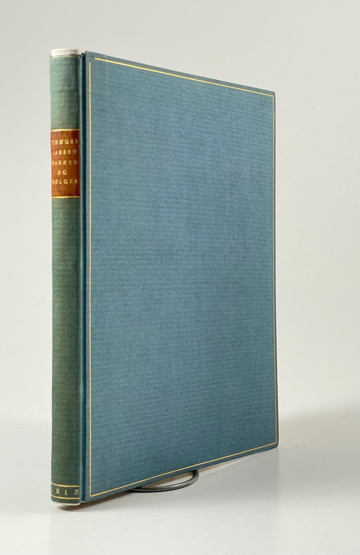 Gyldendal, København 1912. 106 sider. Indbundet ubeskåret med orig. omslag i et smukt gråblåt papirbind med pergament-kapitæler og med enkel stregdekoration på permerne (August Sandgren). Ryggens overtræk med lille rift ved øverste kapitæl.