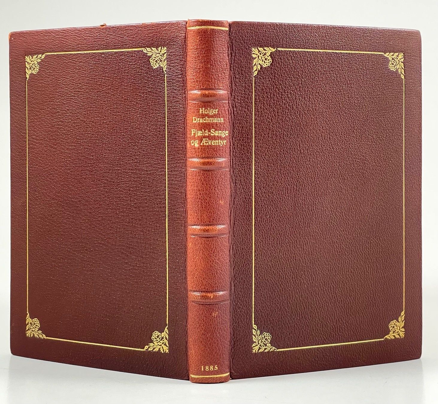 Gyldendal, København 1885. 205 sider. Indbundet ubeskåret med orig. omslag og rygstribe i et kønt helbind af brunt kalveskind med guldtrykt rammeornament på begge permer.