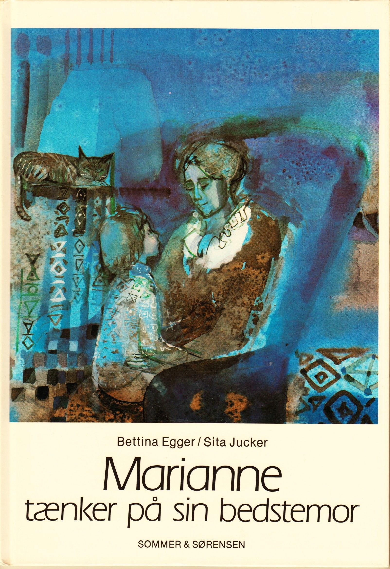 Sommer og Sørensen, 1986. Upag. Illustreret i farver. Indb. Stort format. Afhentes på: Læderstræde 9, kld., 1210 København K Marianne tænker på sin bedstemor. Billedbog. Illustreret af Sita Jucker.