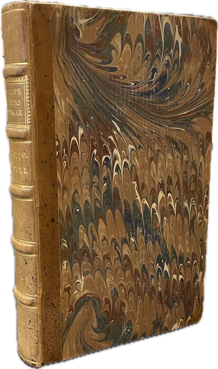 Stockholm, Lars Salvius, 1770. 8:o. (10),+ 345,+ (5) s.+ 8 utvikbara grav. planscher. Titelvignett samt fyra inklistrade grav. vignetter. Modernt hfrbd, guldornerad rygg med upphöjda bind, marmorerade snitt (Östermalms bokbinderi). Äldre namnteckning på titelbladet. Denna årgång innehåller bl.a. Linné ”Beskrifning på örten Calceolaria pinnata”, Wargentin ” Observationer på 1769 års comet”, Mallet ” Berättelse om is-gången och vår-floden i Torne-älf, år 1769” och Frijs ”Berättelse om sill-fiskeriet uti Norrlanden i Norrige”.