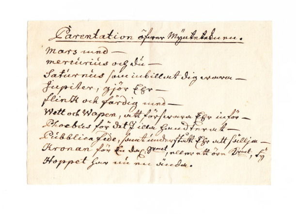 (Stockholm, 1719). 4:o. (8) s. Tagen ur band. Lätt lagerfläckig. Från Ericsberg.