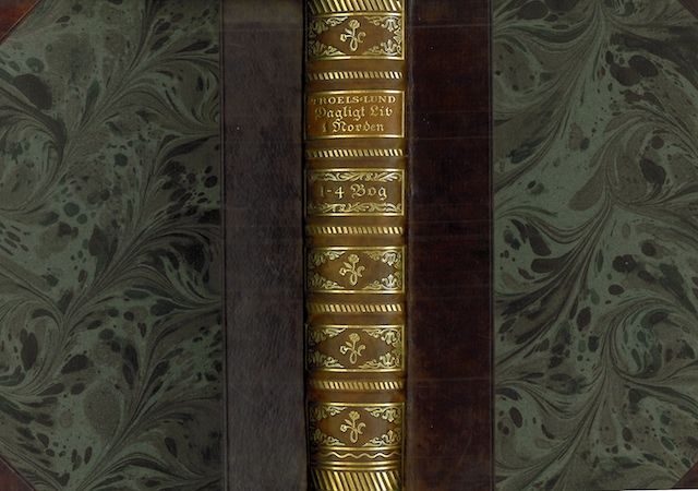 Kbh., 1929-31. Stor 4to. Originale mellombrune skinnryggbind med opphøyde ryggbånd og rik gulldekor på ryggene. Marmorerte dekler. 116, 200, 137, 141, XXVII ; 174, 126, 175, 143, XXIII ; 158, 138, 183, XVIII ; 177, 140, 212, XXV, 24 s. Meget rikt illustrert.. (Gyldendalske Boghandel - Nordisk Forlag) Dansk.