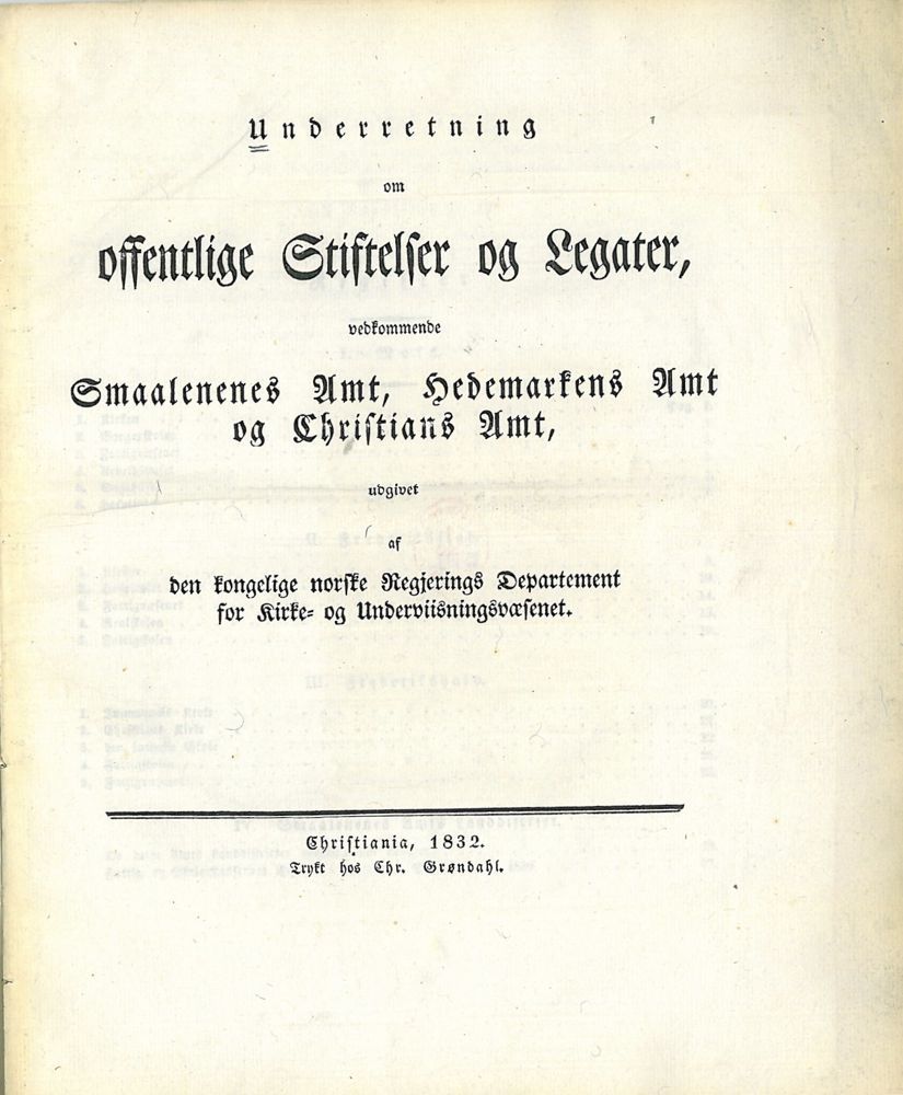 vedkommende Smaalenenes Amt, Hedemarkens Amt og Christians Amt, udgivet af den kongelige norske Regjerings Departement for Kirke- og Underviisningsvæsenet.