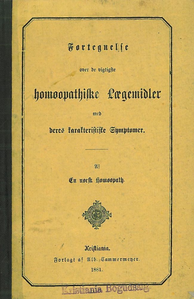 Fortegnelse over de vigtigste homøopathiske Lægemidler med deres karateristiske Symptomer. Af en norsk Homøopath.