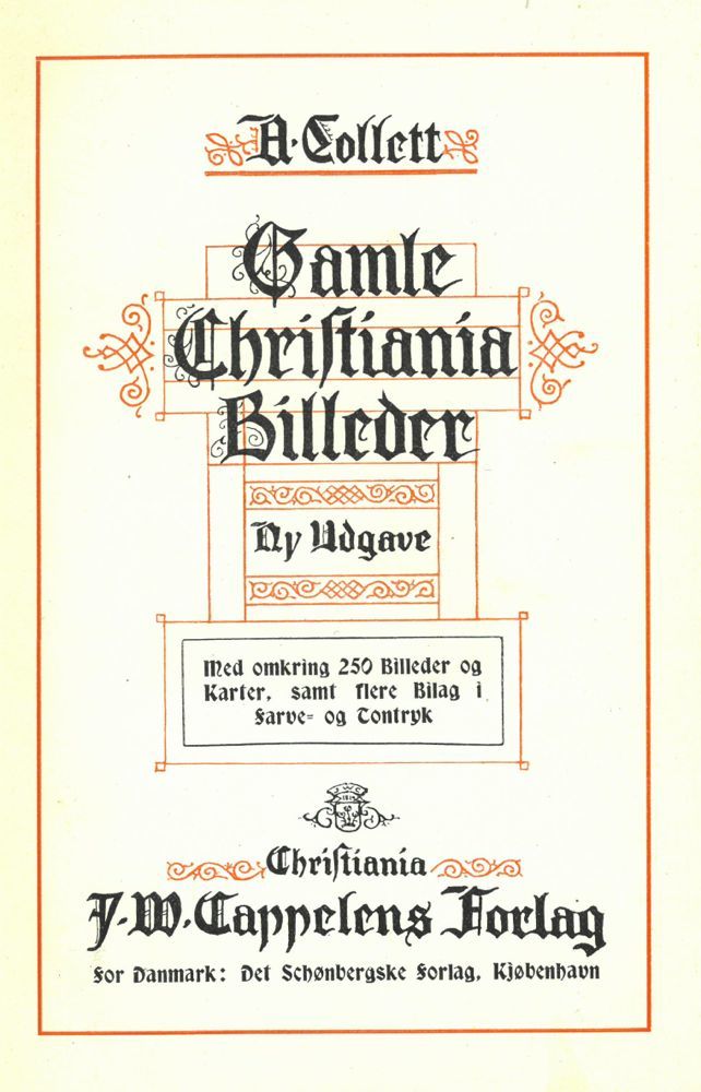 Gamle Christiania Billeder. Ny Udgave. Med omkring 250 Billeder og Karter, samt flere Bilag i Farve- og Tontryk.