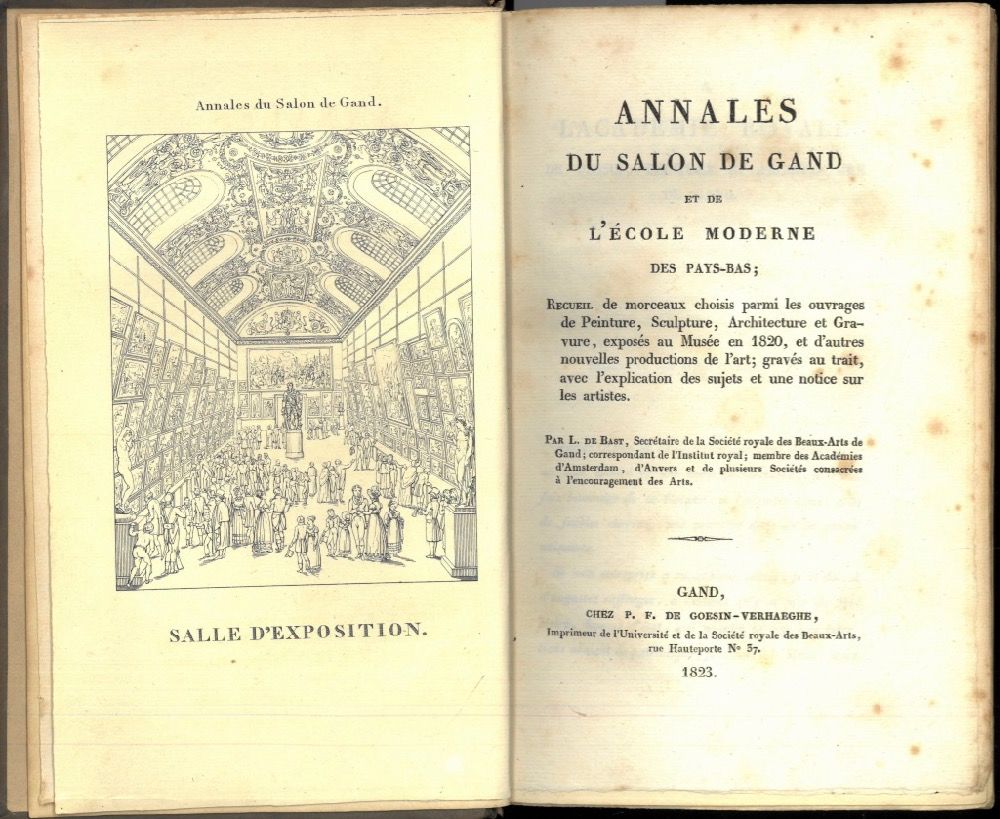 Annales de salon de Gand et de l’école moderne des Pays-Bas ; Recueil de morceaux choisis parmi les ouvrages de Peinture, Sculpture, Architecture et Gravure, exposés au Musée en 1820, et d’autres nouvelles productions de l’art ; gravés au trait, avec l’explication des sujets et une notice sur les artistes.